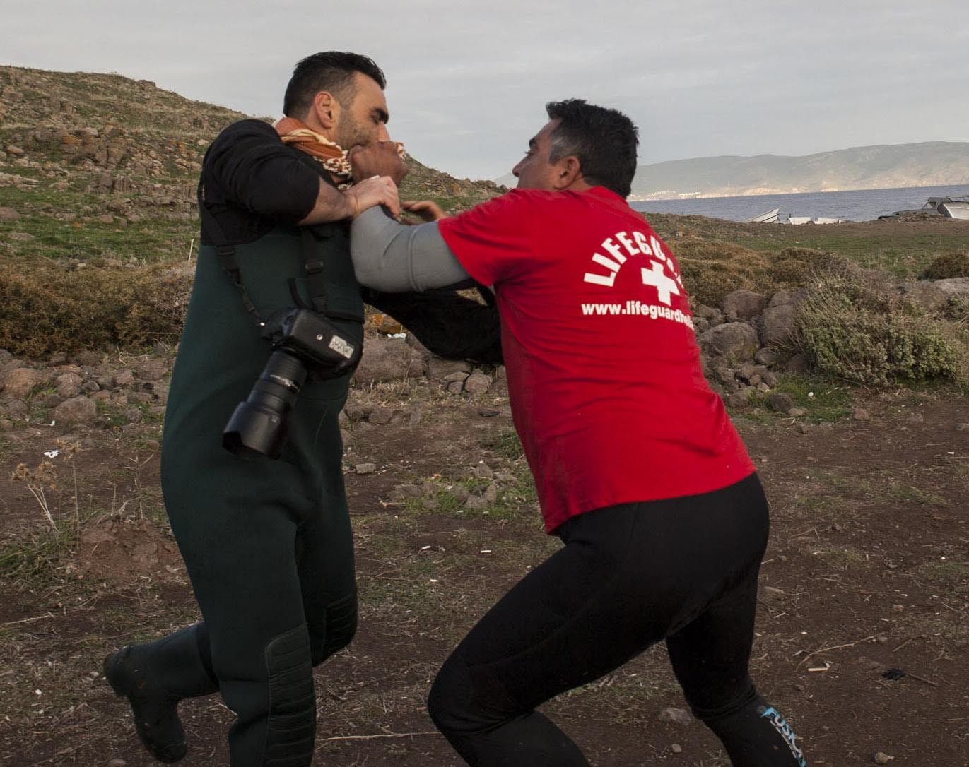 Οι παραπάνω δύο φωτόγραφίες είναι τραβηγμένες πριν από 5 περίπου εβδομάδες. Απεικονίζουν τον ίδιο άνθρωπο, τον Άρη Μεσσήνη, να κρεμάει τη μηχανή του για να βγάλει ένα παιδί προσφύγων από τη θάλασσα. Με το που δημοσιεύονται κάνουν τον γύρο του κόσμου με λέζάντες όπως «συγκλονίζει ο έλληνας φωτογράφος». Τι άλλαξε και το ίδιο πρόσωπο ενεπλάκη σε αυτήν την πολύ περίεργη ιστορία σωματίκης βίας (όπως και από τις εικόνες που ακολουθούν κι επίσης έχουν κάνει το γύρο του διαδικτύου εδώ και μερικά 24ωρα); Τον βρήκαμε στο τηλέφωνο, κουρασμένο από συνεχή πηγαινέλα στπ αστυνομικό τμήμα για καταθέσεις πάνω στο περιστατικό και μηνύσεις.
