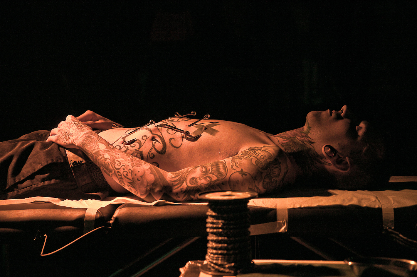 Πόσες φορές έχεις βάλει το σώμα σου και το μυαλό σου σε αυτή τη διαδικασία και πώς την έχεις εξελίξει από την αρχή μέχρι σήμερα; Το έχω επιχειρήσει 35 φορές και αυτό κυρίως λόγω έλλειψης χρόνου. Μέχρι σήμερα θα έλεγα πως έχω καταφέρει να επαναλάβω στις performances μου έναν από τους πιο επώδυνους τρόπους να το κάνει κανείς, η τεχνική λέγεται okipa και κρεμιέσαι από το στήθος. Το πιο σημαντικό όμως είναι ότι έχω καταφέρει να βιώσω σε ικανοποιητικό βαθμό την πιο πνευματική πλευρά η οποία με αφορά αποκλειστικά πλέον.
