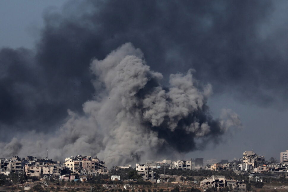 Πυκνός καπνός αναδύεται από τη Λωρίδα της Γάζας μετά από ισραηλινές αεροπορικές επιδρομές, όπως φαίνεται από ανώνυμη τοποθεσία κοντά στα σύνορα μεταξύ της Γάζας και του Ισραήλ, στο νότιο Ισραήλ, 11 Δεκεμβρίου 2023. EPA/ABIR SULTAN