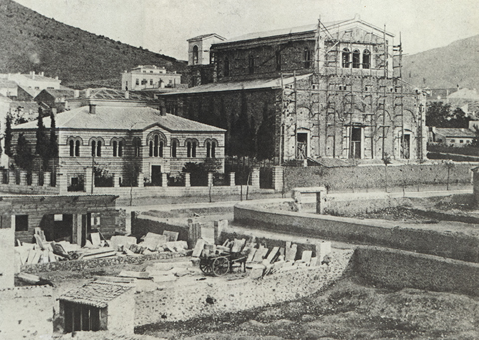 Οι εργασίες εκσκαφής κατά τη θεμελίωση του Μεγάρου της Τράπεζας της Ελλάδος στη λεωφόρο Πανεπιστημίου.