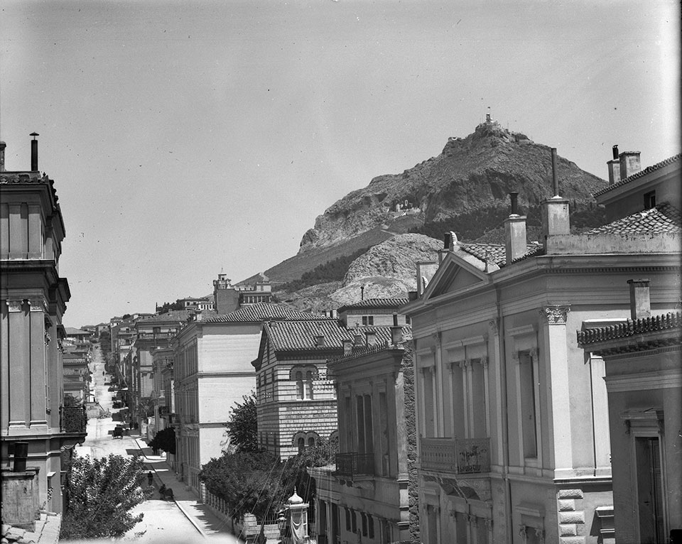 Άποψη της οδού Σίνα και του Λυκαβηττού από τη σημερινή οδό Εδουάρδου Λω, π. 1910