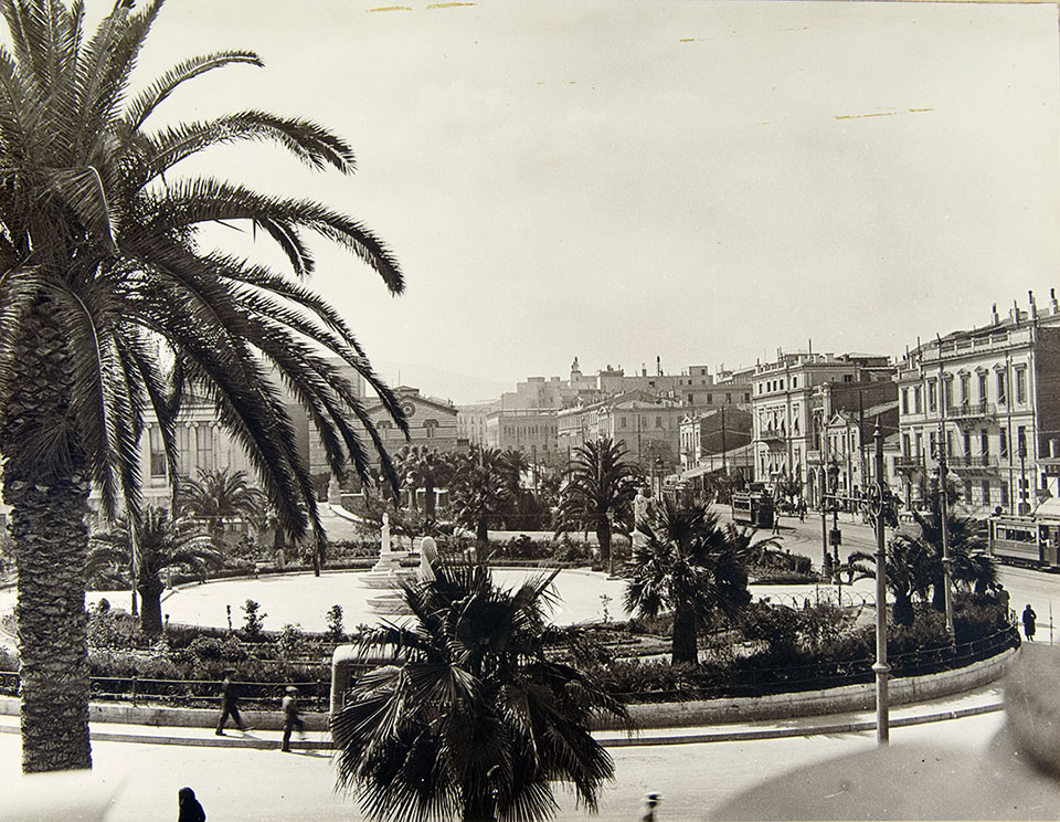 «Οδός Πανεπιστημίου και κήπος Πανεπιστημίου και Ακαδημίας», φωτογραφημένα από την Εθνική Βιβλιοθήκη, π. 1932