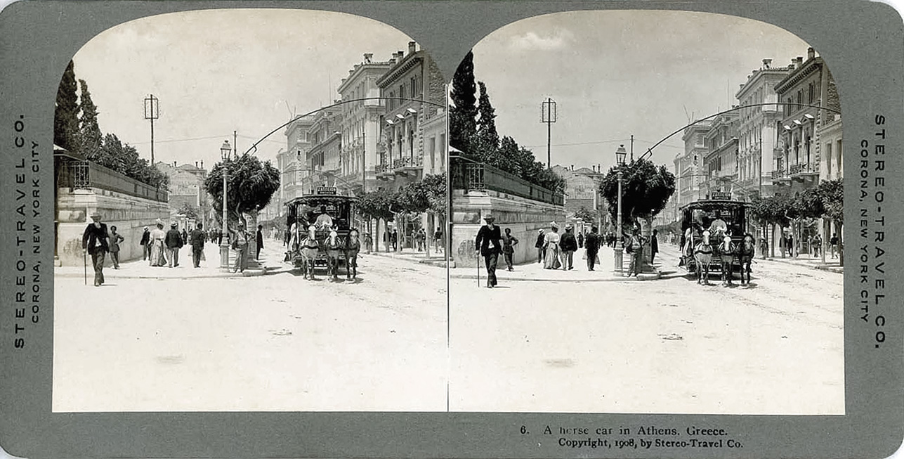 Η οδός Σταδίου, 1908. Στερεοσκοπική φωτογραφία.