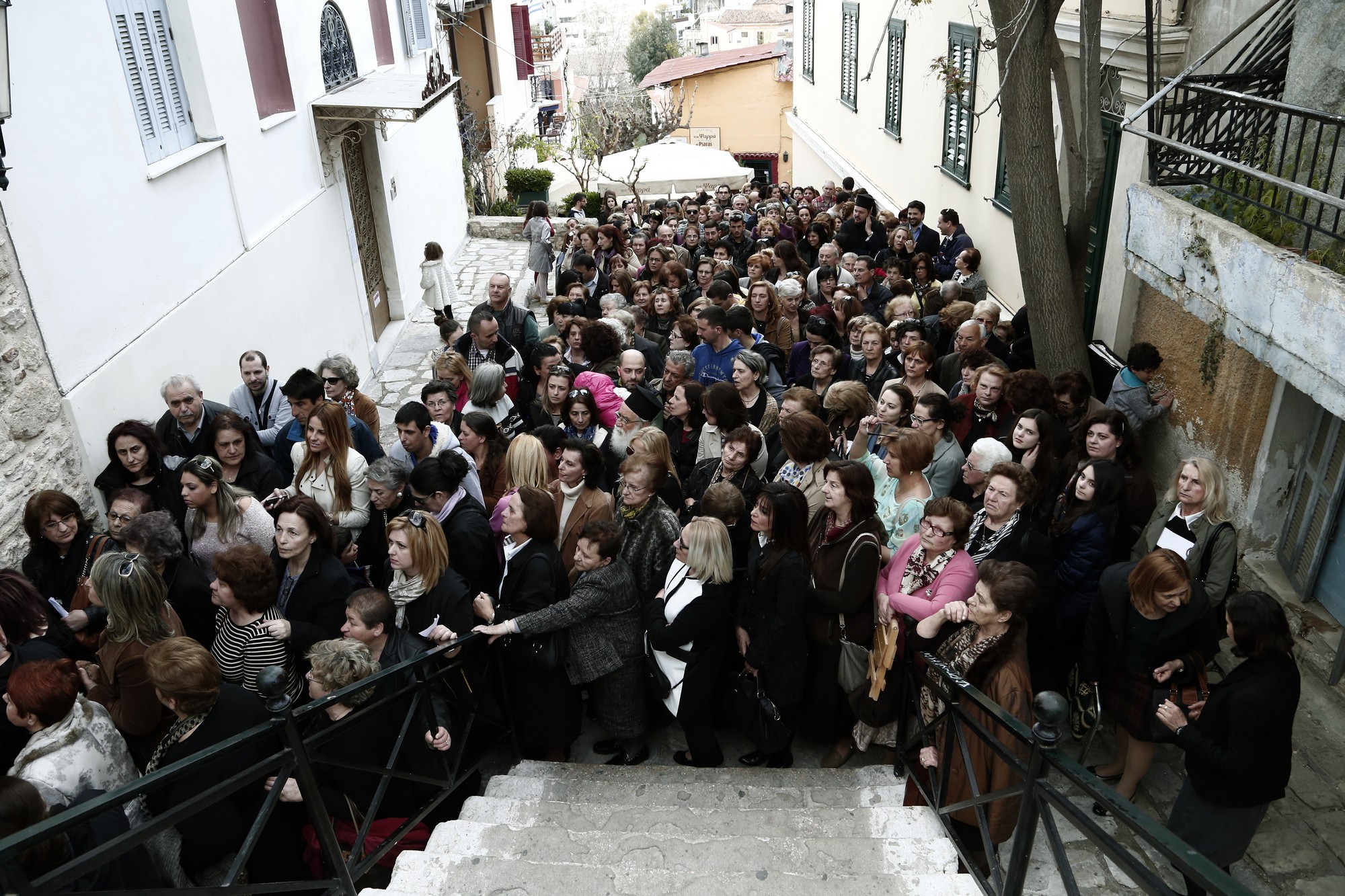 Τις τελευταίες μέρες η κατάνυξη κατοικεί στην Πλάκα. Είδα μπροστά στα μάτια μου, με υπαιτιότητα δική της (της κατάνυξης), λιποθυμίες, άγριους διαπληκτισμούς και δεκάδες κινητά τηλέφωνα σε στάση εμπόλεμη –δεν είδα πάντως ούτε μια selfie .Η εικόνα της Παναγιάς Ιεροσολυμίτισσας που κατέφθασε από τα Ιεροσόλυμα και θα παραμείνει μέχρι το τέλος του Μαΐου στο Ναό των Αγίων Αναργύρων στο Μετόχι του Παναγίου Τάφου, στους πρόποδες της Ακρόπολης, χτύπησε συναγερμό στους θεοσεβείς της επικράτειας. Δυο ηλικιωμένες αδελφές, παρόλα τα προβλήματα υγείας που τις ταλαιπωρούν, πήραν χωρίς να το σκεφτούν το βαπόρι απ΄τα Χανιά (μένουν στο Ρέθυμνο) και ήρθαν να προσκυνήσουν την «αχειροποίητη», όπως τόνισε η μια εξ αυτών, εικόνα της Παναγίας . «Αφού δεν μπορούμε να πάμε στα Ιεροσόλυμα ήρθαμε εδώ. Το ίδιο είναι», συμπλήρωσε η αδελφή της.« Πώς μάθατε για την εικόνα »; ρώτησα μια 40χρονη που μαζί με την 7χρονη κόρης της κατέφθασαν, εκτός προγράμματος και στολισμένες, για τη χάρη της «αχειροποίητης» στην Αθήνα από την Κοζάνη. Περίμενα να απαντήσει από την τηλεόραση ή απ’το ραδιόφωνο. «Από την εκκλησία» , με διαφώτισε. Εγινε γερή δουλειά στο Ποίμνιο, κρίνοντας από τον πανικό που επικρατεί στο Μετόχι , βρέχει –χιονίζει (και με τις διαδηλώσεις κι αντιδιαδηλώσεις για τις Σκουριές) σχεδόν όλη τη μέρα. Σύμπασα η ελληνική κυρίως επαρχεία κάνει μια στάση στο Μετόχι φορώντας τα καλά της.