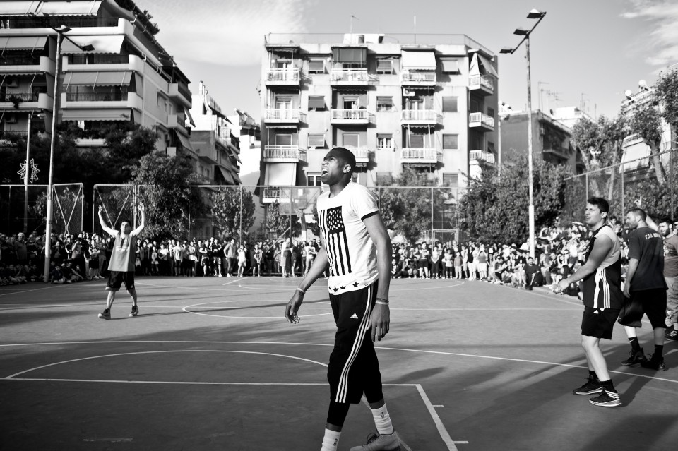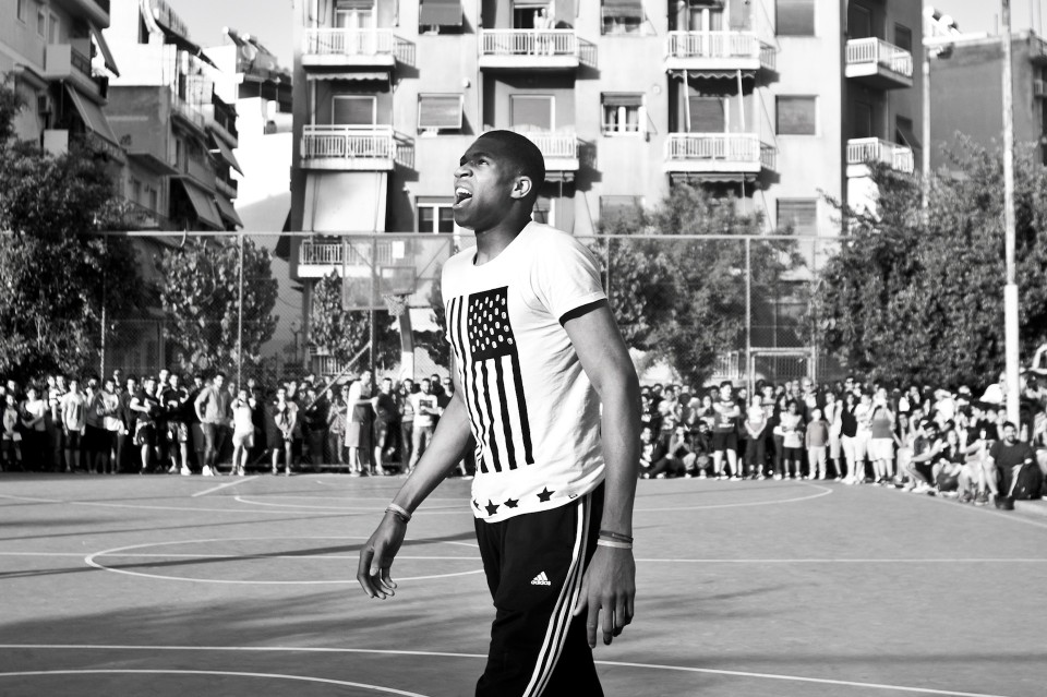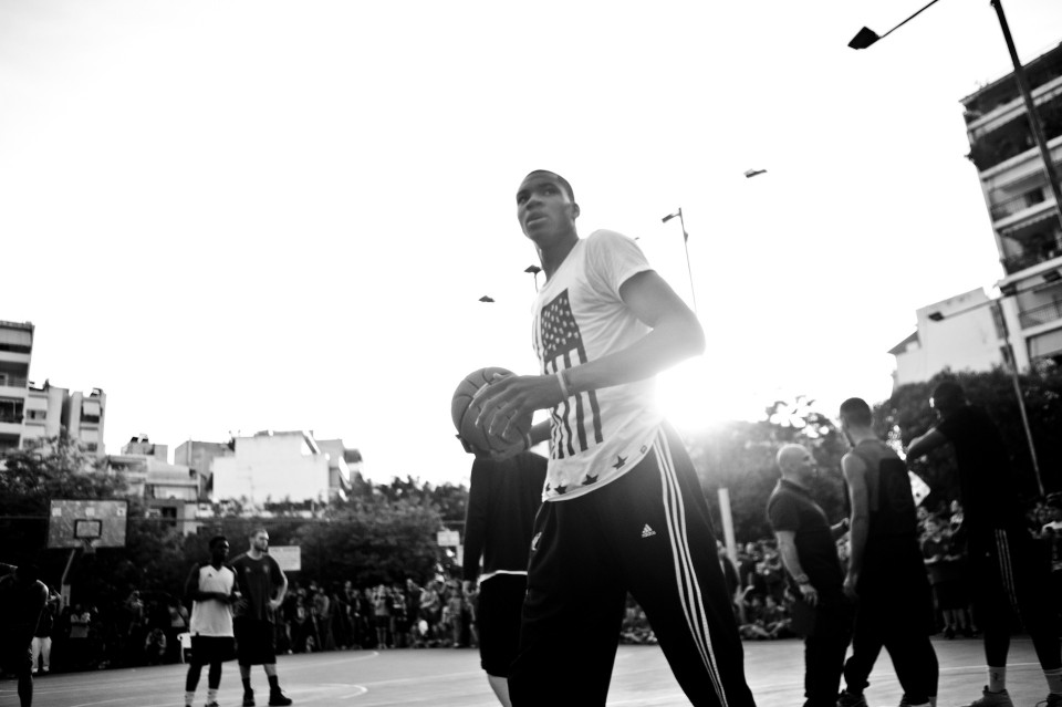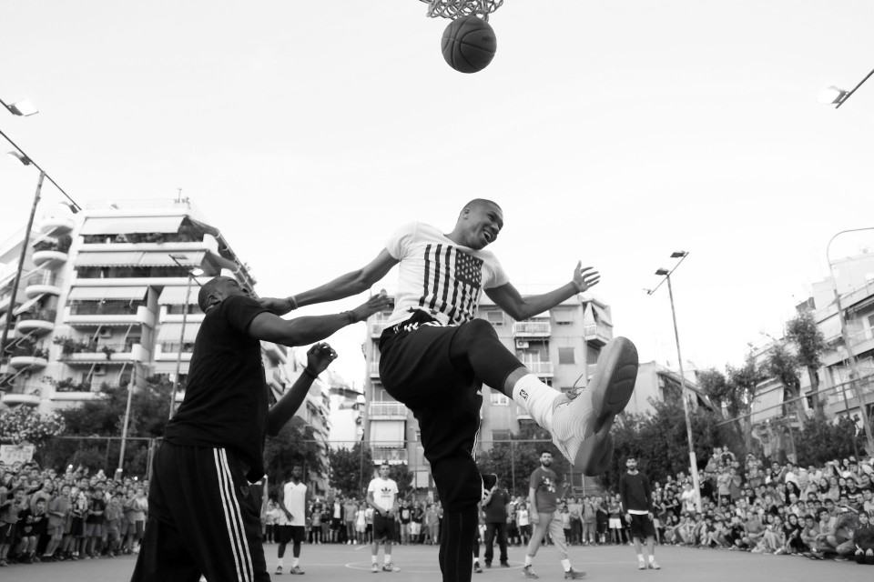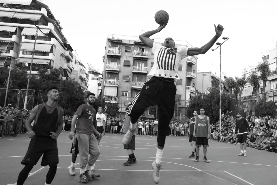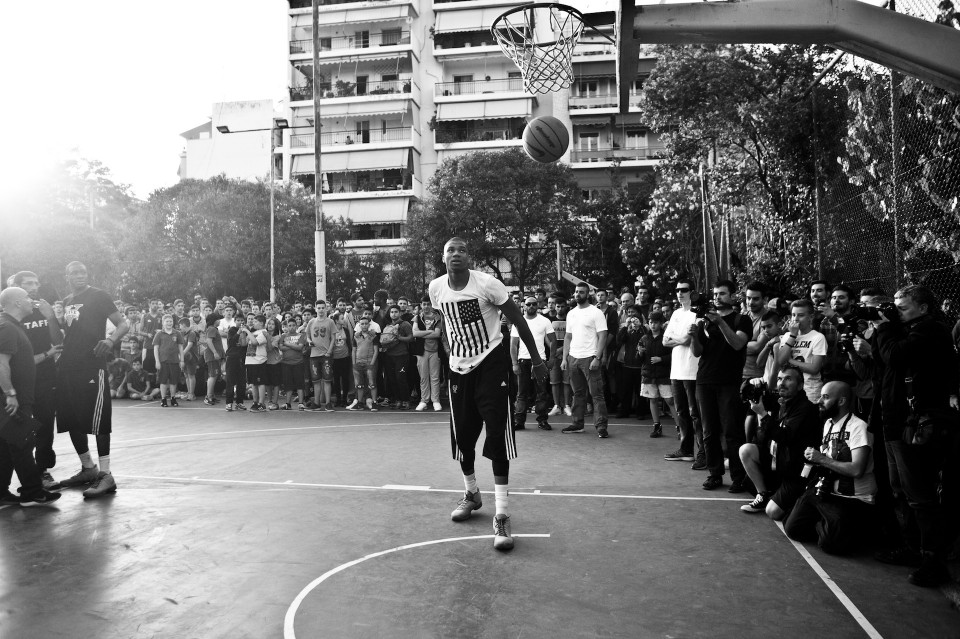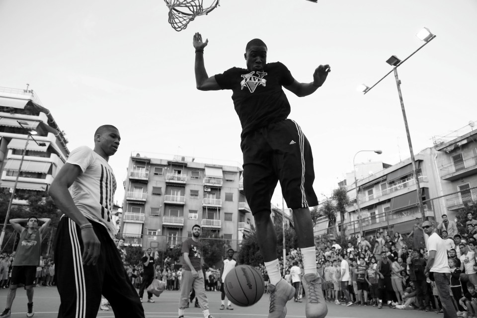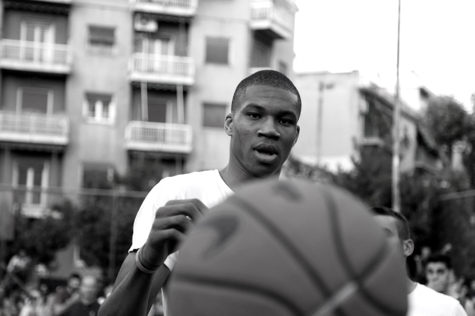 NBA player Giannis Antetokounmpo visited his old neighborhood in Athens where he grew up and invited friends to play with him. Athens on May 12, 2015 / Ο Γιάννης Αντετοκούνμπο στην παλιά του γειτονιά για ένα παιχνίδι με τους φίλους του, στο ανοιχτό του Τρίτωνα στα Σεπόλια. Τρίτη 12 Μαίου 2015