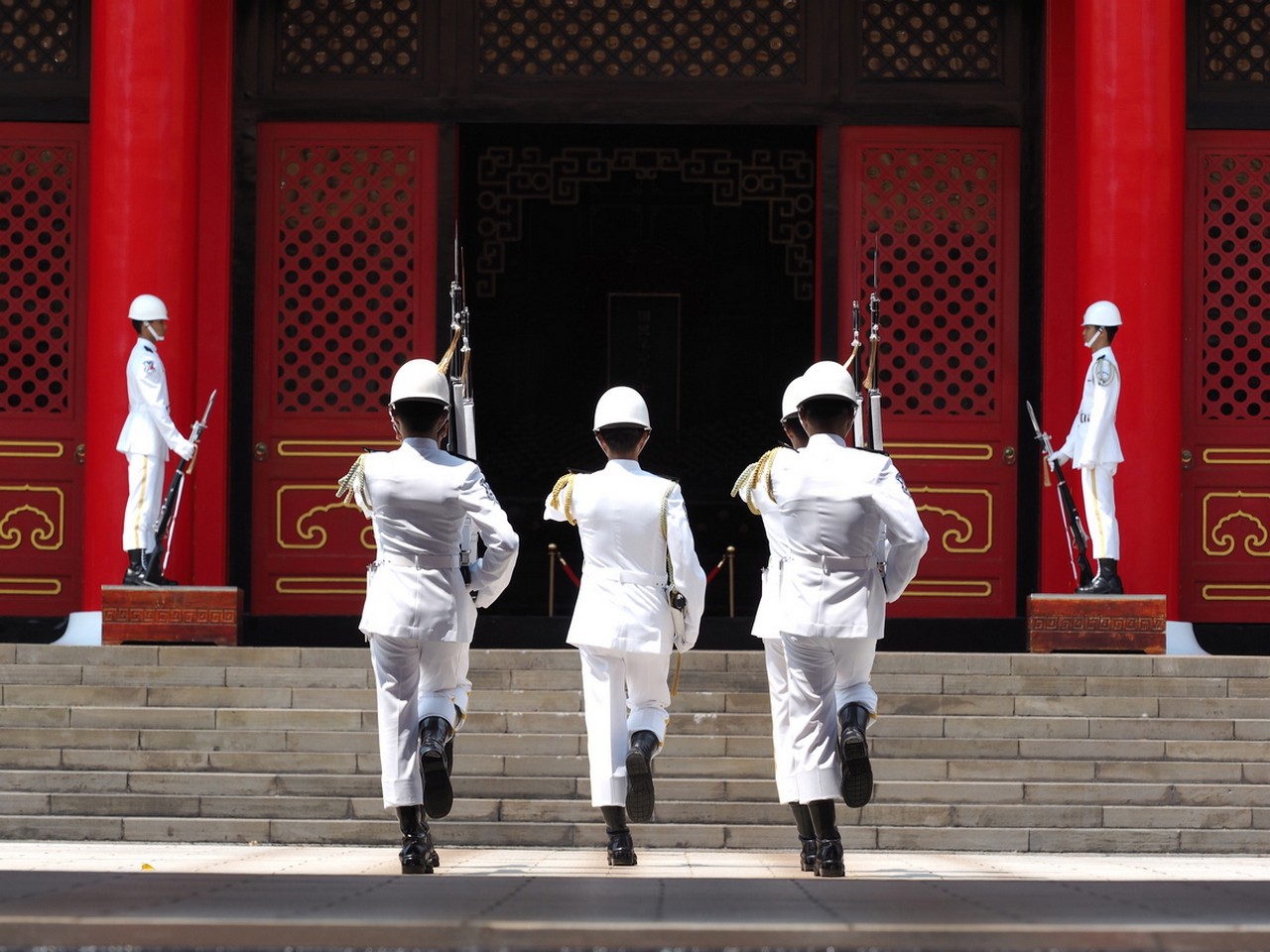Φωτογραφίες από την αλλαγή φρουράς στο Μνημείο των Μαρτύρων στην Ταϊπέι, πρωτεύουσα της Ταϊβάν.