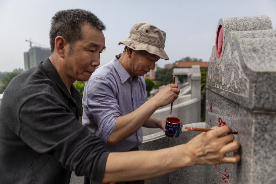 Στην κινέζικη πόλη Guangzhou στην επαρχία Guangdong το φεστιβάλ Qingming ή Ημέρα Καθαρισμού των Μνημάτων είναι ένα έθιμο που φέρνει όλη την οικογένεια κοντά στους νεκρούς. Οι συγγενείς καθαρίζουν τους τάφους των προγόνων τους, τρώνε και πίνουν, γυμνάζονται και μερικές φορές χορεύουν ενώ μουσική ακούγεται στον χώρο σε όλη τη διάρκεια της ημέρας. Η ατμόσφαιρα είναι περισσότερο εορταστική παρά θλιμμένη, οι συγγενείς ενώνονται πάλι και προσεύχονται για όσους έχουν φύγει.