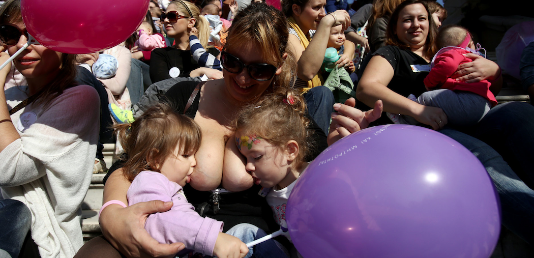 Μαμάδες σε 39 πόλεις της Ελλάδας συγκεντρώθηκαν σήμερα το πρωί σε δημόσιους χώρους και επιδόθηκαν σε δημόσιο θηλασμό με στόχο να αφυπνίσουν την κοινωνία για τα οφέλη του θηλασμού και τη στήριξη των νέων μαμάδων που θηλάζουν τα μωρά τους.