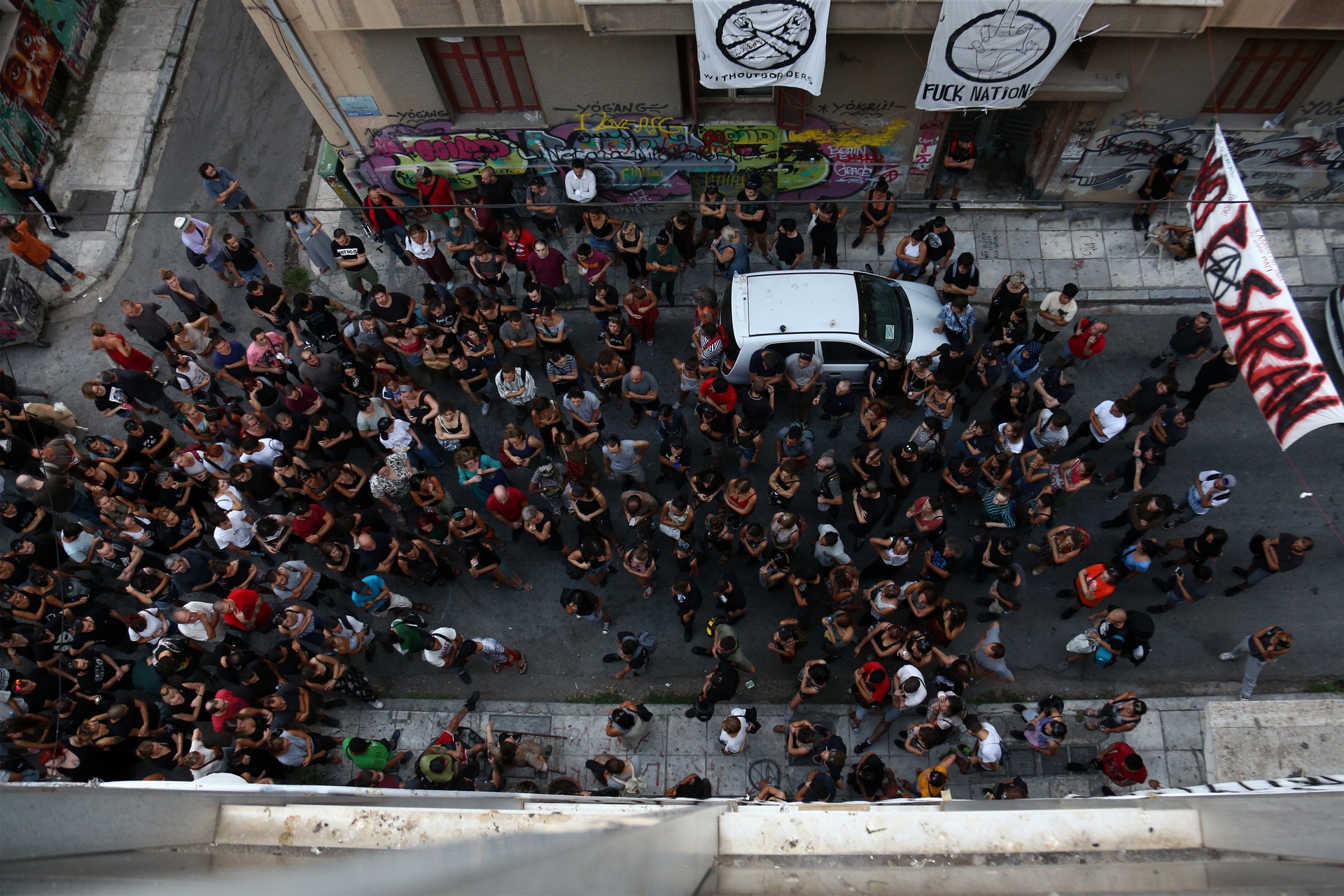 Με έναν μαγικό τρόπο εντούτοις θα επικοινωνούν, αφού η φροντίδα και η συντροφικότητα έχουν τα ίδια σωματικά σινιάλα. Έξω, στη Μπουμπουλίνας, στην Τοσίτσα και αλλού θα υπάρχουν διμοιρίες των ΜΑΤ. Μπορεί να επιτεθούν ή να κοροϊδέψουν κάποια κοπέλα, κάποιο gay αγόρι ή κάποιον πρόσφυγα που θα περάσει μόνος από μπροστά τους. Θα ακούγονται οι ασύρματοι, θα χαϊδεύουν τη θήκη με το όπλο τους ή θα παίζουν στο κινητό τους. Μπορεί να σταματήσουν κάποιον για έλεγχο και να τον ξεγυμνώσουν στη μέση του δρόμου, μπορεί να ρίξουν χημικά σε κάποια εκδήλωση ή να προσπαθήσουν να σπάσουν την πόρτα κάποιου καφενείου χωρίς εισαγγελέα. Θα περιμένουν εντολή να πάνε να χαλάσουν με γκλοπ και κλωτσιές κάποια νησίδα ομορφιάς. Και κάθε φορά που αντικρίζω αυτούς τους δύο διαμετρικά αντίθετους κόσμους σε απόσταση λίγων τετραγωνικών, καταλήγω στους ίδιους στίχους του Νίκου Καρούζου: «Θα περάσουν από πάνω μας όλοι οι τροχοί. Στο τέλος τα ίδια τα όνειρα μας θα μας σώσουν»