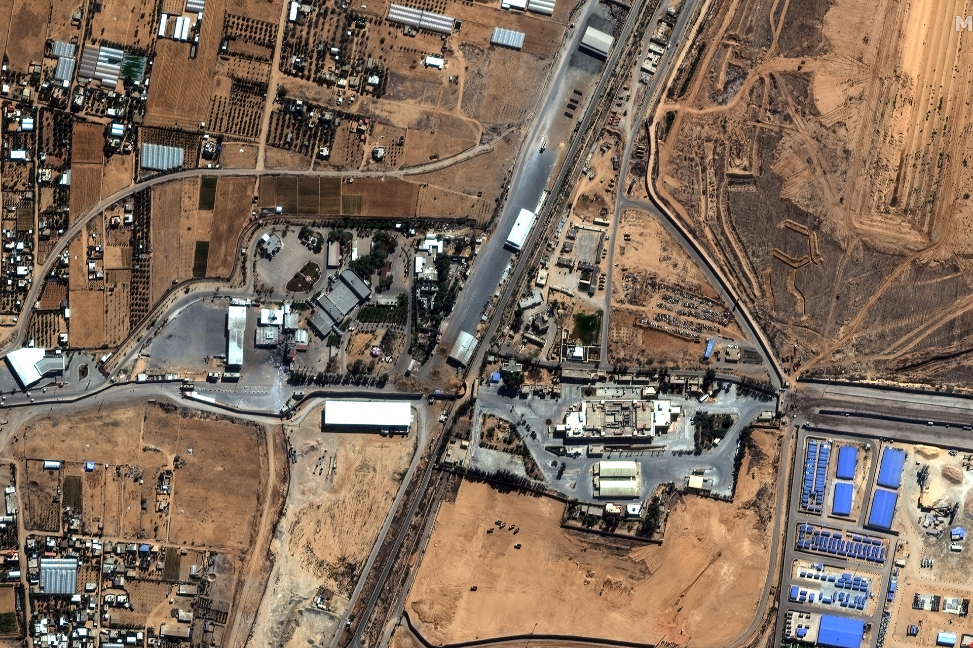 Δορυφορική εικόνα της του συνοριακού περάσματος της Ράφα της Γάζας που οδηγεί στην Αίγυπτο, 15 Οκτωβρίου 2023. EPA/MAXAR TECHNOLOGIES ©2023 Maxar Technologies