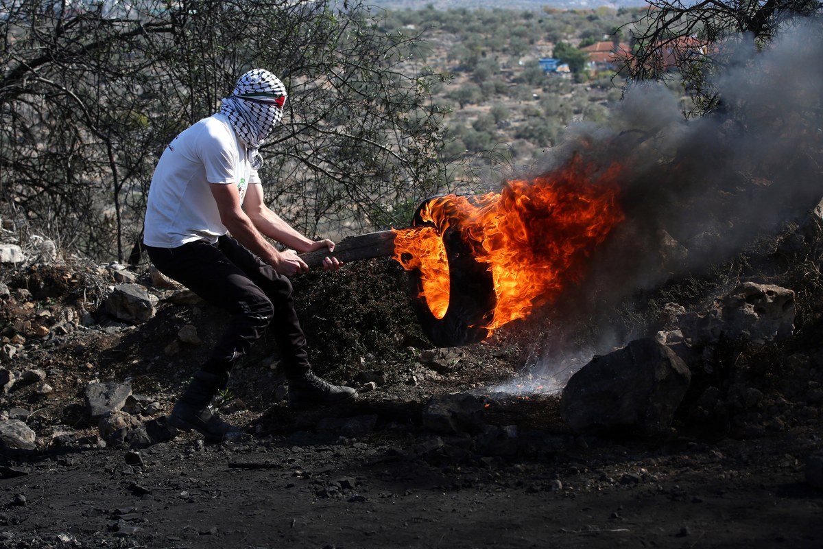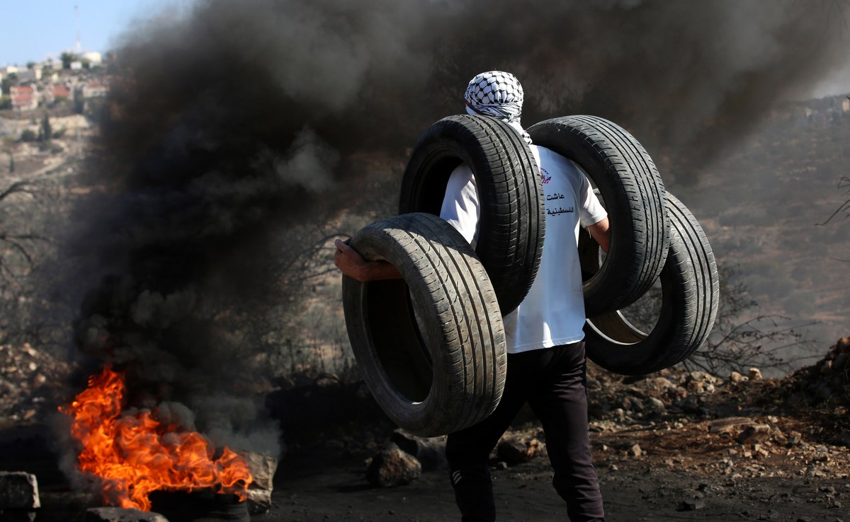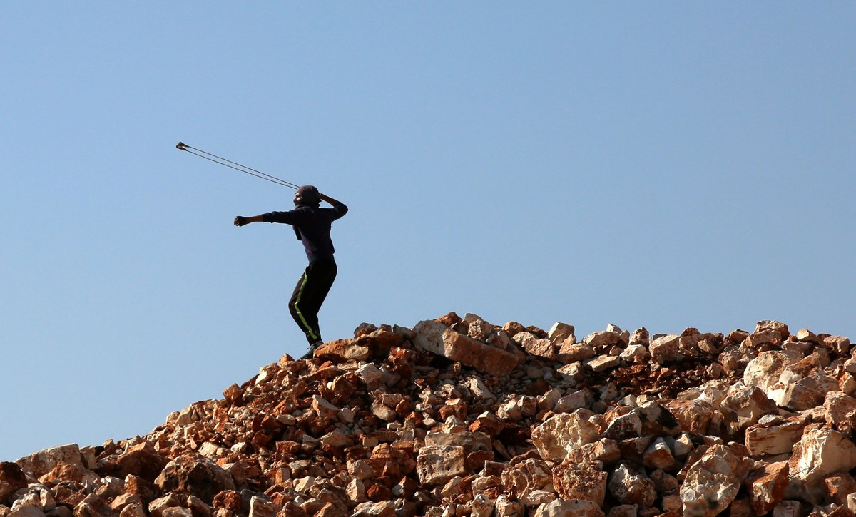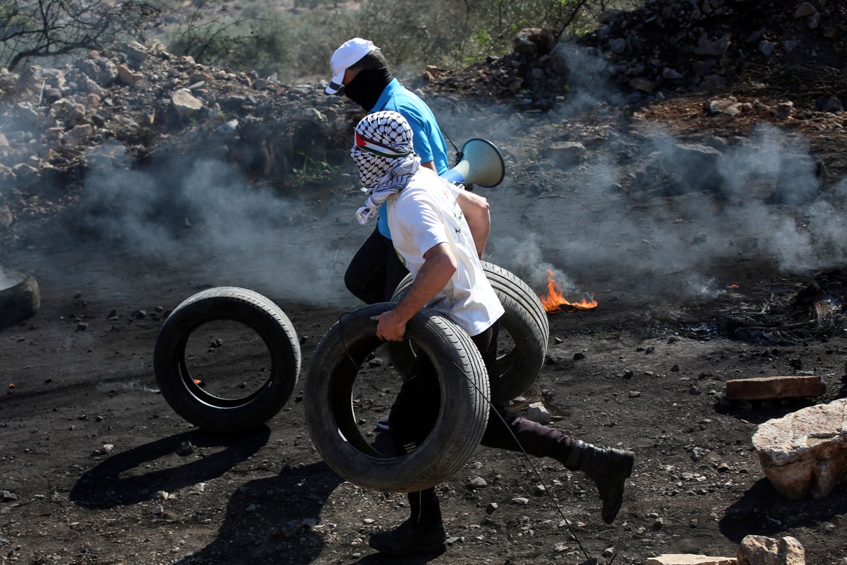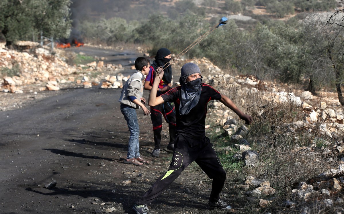 Παλαιστίνιοι διαδηλωτές ρίχνουν πέτρες σε Ισραηλινούς στρατιώτες, κατά την διάρκεια συγκρούσεων, μετά από μια διαμαρτυρία εναντίον των Ισραηλινών οικισμών στο Qadomem, το χωριό Kofr Qadom, κοντά στην πόλη Nablus της Δυτικής Όχθης.