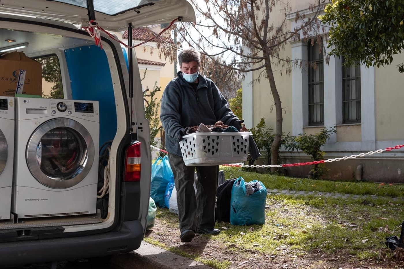 «Εμείς πραγματοποιούμε μια έρευνα για το που συγκεντρώνεται ο πληθυσμός και το που υπάρχουν γενικότερα υπηρεσίες που παρέχονται για άστεγο πληθυσμό. Εντοπίζουμε τα σημεία όπου κυκλοφορούν περισσότερο, ώστε να μην υπάρχει η δυσκολία της μεταφοράς των ρούχων τους σ’ εμάς. Μπορεί να λειτουργούμε ακόμη και σε δύο πολύ κοντινά σημεία προκειμένου να διευκολύνουμε τους ανθρώπους. Ο πληθυσμός διαφέρει από σημείο σε σημείο. Οι άνθρωποι που φέρνουν τα ρούχα τους παίρνουν αριθμούς προτεραιότητας, σημειώνουμε τα στοιχεία τους και έρχονται και παραλαμβάνουν τα ρούχα στο τέλος της βάρδιας».