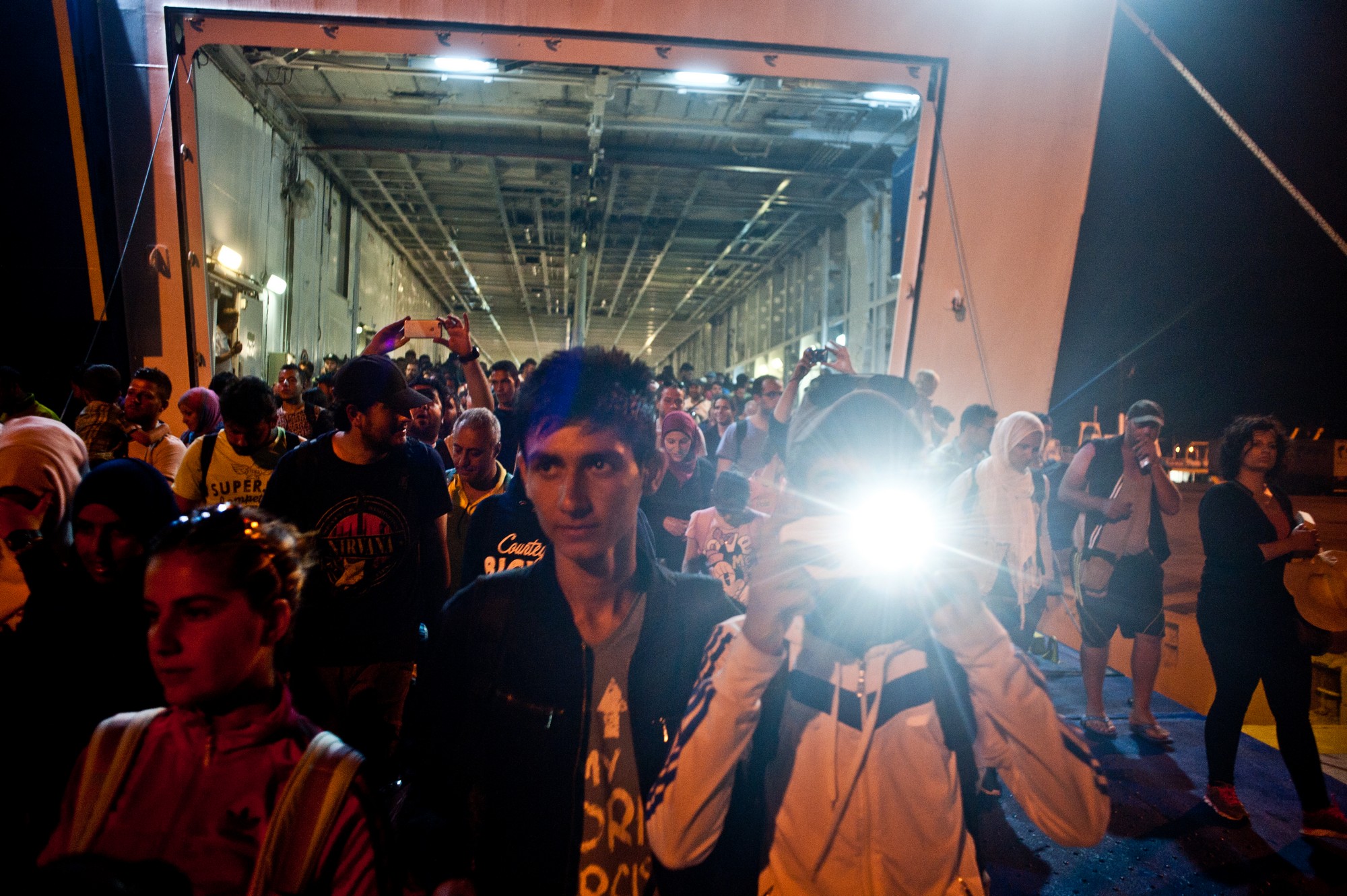 Μια τυπική καλοκαιρινή βραδιά στο λιμάνι του Πειραιά με τον αντίστοιχο αναβρασμό που επικρατεί πριν τον απόπλου με οικογένειες, φορτηγά και τουρίστες με σακίδια. Στην πύλη Ε1 το Blue Star 2 ετοιμάζεται να αναχωρήσει με προορισμό τη Ρόδο. Λίγο πριν το φέρι λύσει τους κάβους, στην δίπλα προβλήτα είναι ήδη μαζεμένες κάμερες ξένων πρακτορείων, φωτορεπόρτερ και λιμενικοί. Είναι εννέα και μισή ακριβώς και το ταχύπλοο «Tera Jet» μετά από μια εντυπωσιακή στροφή, δένει και μέσα από τα έγκατα του βγαίνουν 1.800 επιβάτες, πρόσφυγες που ταξιδεύουν από τη Μυτιλήνη. Όλοι αυτοί οι άνθρωποι αναγκάστηκαν να δώσουν περίπου χίλια ευρώ ο καθένας σε κάποιον διακινητή για να τους φέρει σε κάποιο ελληνικό νησί.