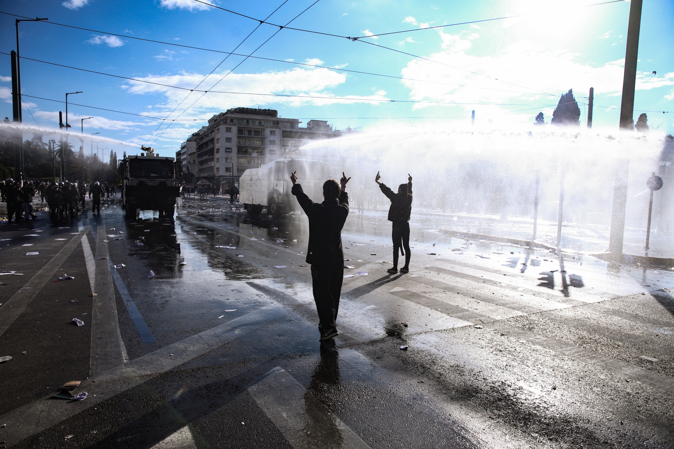 Επεισόδεια κατα τη διάρκεια της διαδήλωσης στην επέτειο των δύο ετών από το μοιραίο σιδηροδρομικό δυστύχημα στην κοιλάδα των Τεμπών το 2023, το οποίο στοίχισε τη ζωή σε 57 ανθρώπους , στην Αθήνα , στις 28 Φεβρουαρίου , 2025