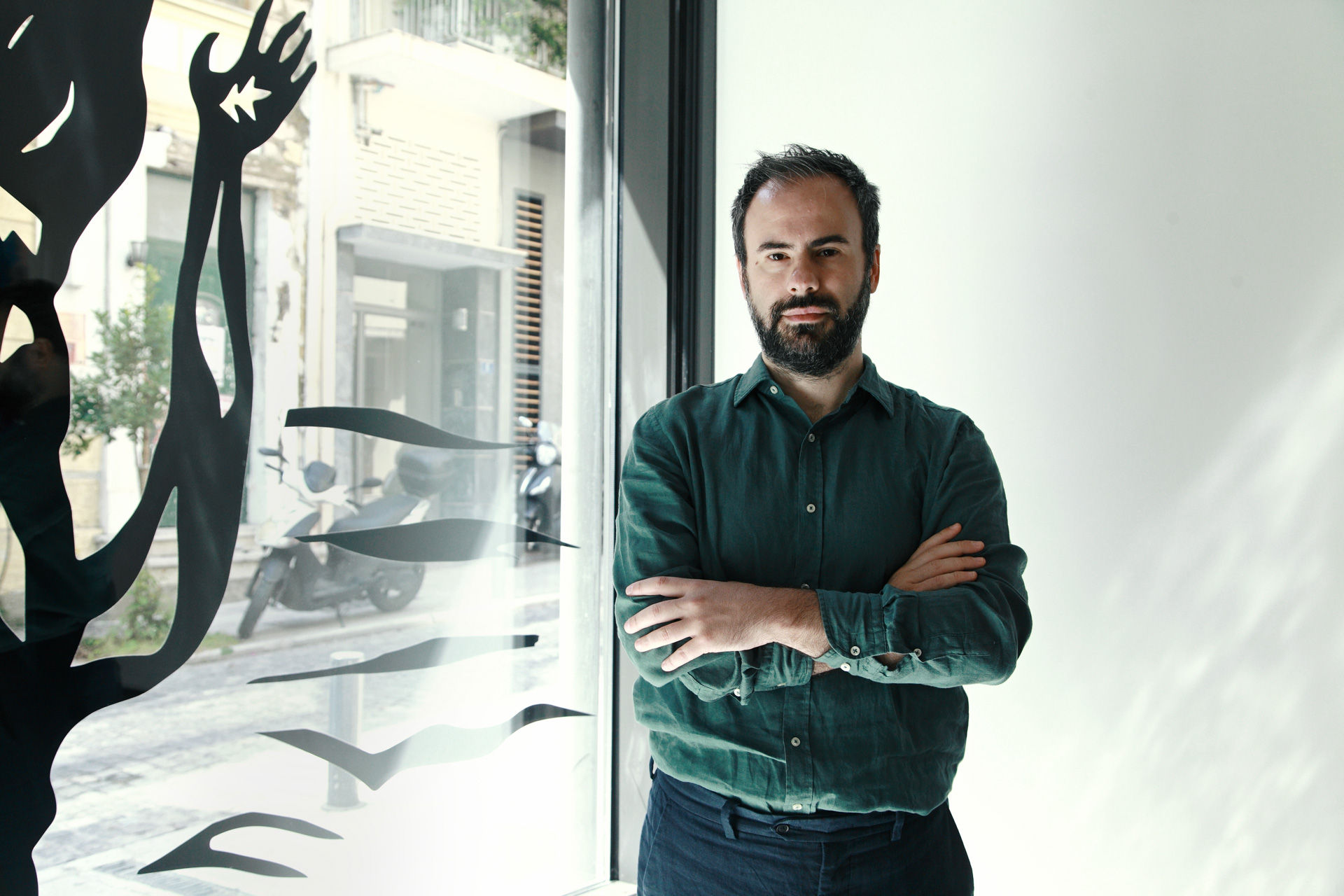 O Κωνσταντίνος Κίμωνας Τσέτσος στην γκαλερί Δύο Χωριά, όπου εργάζεται © Νατάσα Πανταζοπούλου