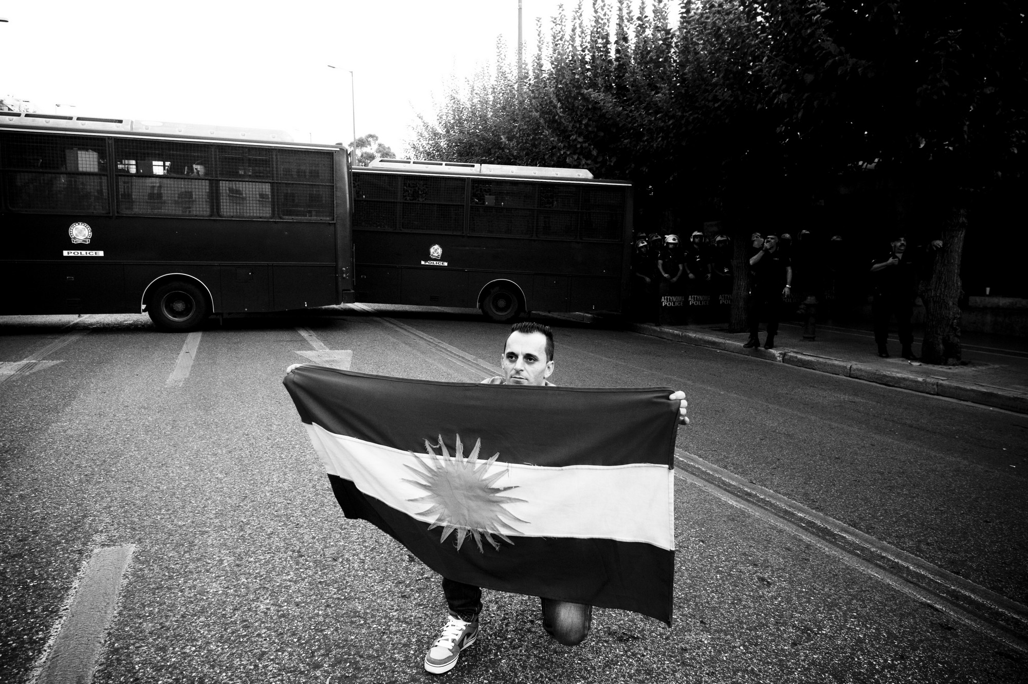 Η Κομπάνι είναι μια Κουρδική πόλη της Συρίας. Πιθανότατα δεν θα τη μαθαίναμε για κανέναν άλλο λόγο αν δεν γινόταν εκεί αυτές τις μέρες μια ομηρική σύγκρουση ανάμεσα σε Κούρδους και Τζιχαντιστές. Την ίδια ώρα που οι συμπατριώτες τους πολεμούν, την περασμένη Δευτέρα, 13 του μήνα, οι Κούρδοι της Αθήνας πραγματοποίησαν συγκέντρωση και πορεία με αφορμή όσα συμβαίνουν στην περιοχή. Παντού υπήρχαν σημαίες με τα χρώματα του Κουρδιστάν και με το πρόσωπο του Αμπντουλάχ Οτσαλάν, ενώ φώναζαν ρυθμικά «Ζήτω το Κομπάνι». Η Popaganda βρέθηκε εκεί και συνομίλησε με δύο διαδηλωτές, τον Χ. και τον Α., που ζουν μόνιμα στη χώρα μας, μαθαίνοντας από το διαδίκτυο και την τηλεόραση τι συμβαίνει καθημερινά στο Κομπάνι. Όμως πού βρίσκεται το Κομπάνι και τι ακριβώς συμβαίνει εκεί; Πρόκειται για μια από τις τρεις βασικές Κουρδικές πόλεις της Συρίας με πληθυσμό περίπου 200.000 κατοίκους. Οι άλλες δύο είναι το Κάμσλι και το Αφρίν.