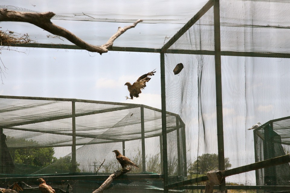 Όπως και να ‘χει πηγαίνουμε στο διπλανό χώρο όπου ο Αστερίξ, μια πανέμορφη αλεπουδίτσα 3 χρονών, μας πλησιάζει πίσω από την περίφραξη αλλά μετά από λίγο τρομάζει κάπως από την φωτογραφική μηχανή και απομακρύνεται διστακτικά. Προχωράμε πιο κάτω για να δω τα πανέμορφα φοινικόπτερα, που έχουν χάσει φτερό από πυροβολισμό και πλέον δεν μπορούν να πετάξουν, όπως και άλλα τραυματισμένα πουλιά, μεταξύ αυτών γεράκια και πελεκάνους. Απόλυτη ησυχία και ξαφνικά ένας περίεργος θόρυβος από κάπου ψηλά. Στην οροφή των περιφραγμένων χώρων έχουν φτιάξει τις φωλιές τους πελαργοί, σε κάθε φωλιά υπάρχει ένα ζευγάρι, σε κάποιες υπάρχει το ζευγάρι και το πιτσιρίκι τους, ξεκινούν από τη μια φωλιά να κροταλίζουν τα ράμφη τους, απαντούν από μια άλλη, γίνεται σούσουρο από μια τρίτη, όλο αυτό ακούγεται κάπως σαν κοροϊδευτικό γέλιο και έχω την αίσθηση ότι τα πουλιά μας κουτσομπολεύουν.