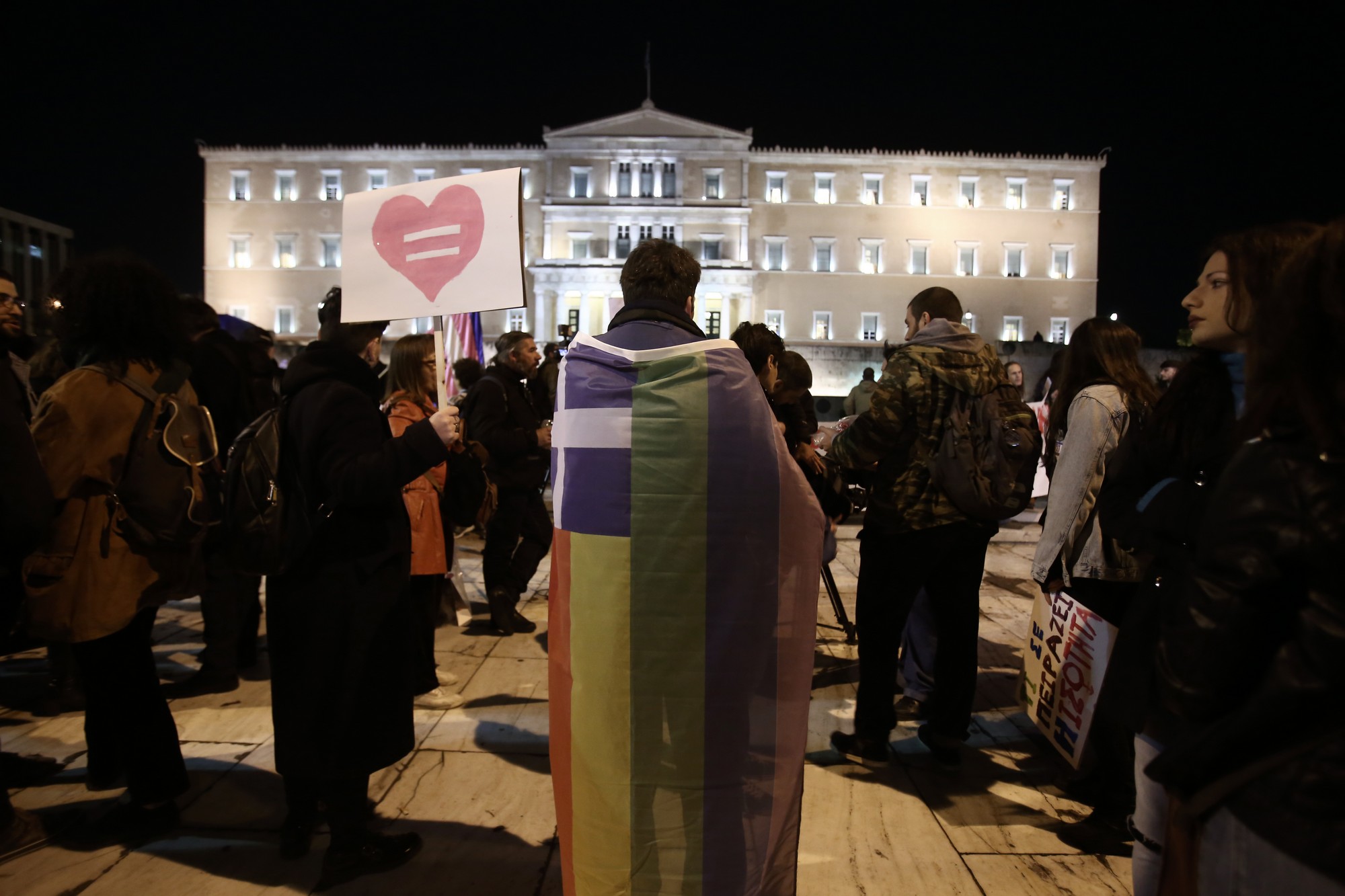 Organizations for the rights of homosexuals, protest outside the Greek Parliament against the draft law on civil partnerships. In Athens on December 22, 2015 / ÓõãêÝíôñùóç óôï Óýíôáãìá ïñãáíþóåùí ãéá ôá äéêáéþìáôá ôùí ïìïöõëïößëùí, ìå áöïñìÞ ôçí øÞöéóç ôïõ íïìïó÷åäßïõ ãéá ôï óýìöùíï óõìâßùóçò óôçí ïëïìÝëåéá ôçò ÂïõëÞò. Ôñßôç 22 Äåêåìâñßïõ 2015