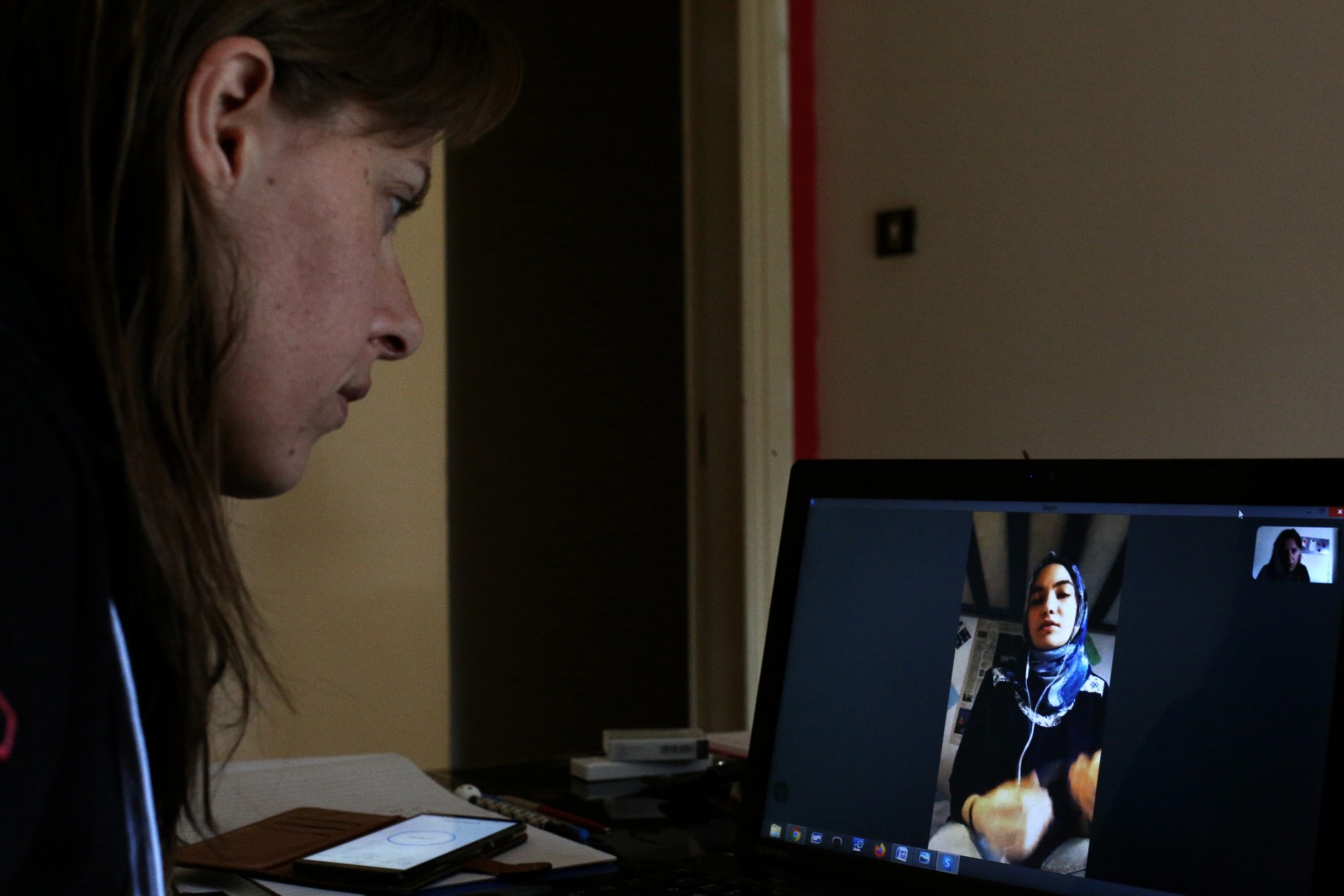 Η Parwana ενώ συνομιλεί με τη δημοσιογράφο Μαρία Λούκα.