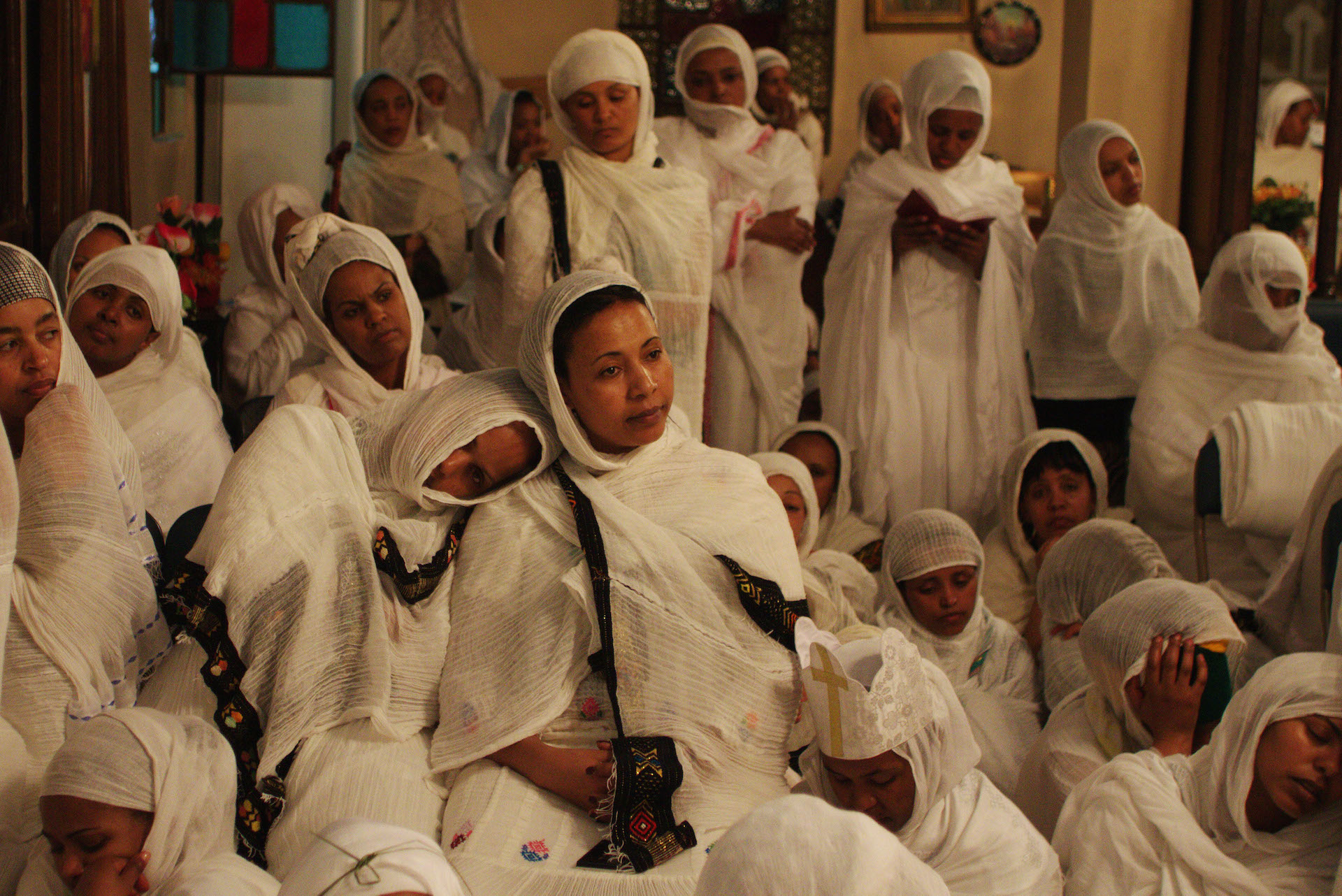 Η Αθήνα είναι ομολογουμένως μια πόλη αρκετά ετερόκλητη και ποικιλόμορφη, όσον αφορά το πλήθος των εθνικοτήτων που την απαρτίζουν. Μία από αυτές είναι εκείνη των Αιθιόπων, η οποία απαριθμεί (σύμφωνα με στοιχεία της Αιθιοπικής πρεσβείας για το 2013) 2.678 άτομα ανά την Ελλάδα. Οι Αιθίοπες της πρωτεύουσας κατοικούν ως επί το πλείστον στην περιοχή της Κυψέλης και των Αμπελοκήπων και εκκλησιάζονται σε ένα μικρό εκκλησάκι που τους παραχώρησε η Αρχιεπισκοπή Αθηνών το 1987 στο Πολύγωνο, στην οδό Μπόχαλη αριθμός 12. Εκεί λοιπόν, η ακολουθία του Μ. Σαββάτου χαίρει απόλυτης ευλάβειας και η μυσταγωγική διάθεση των πιστών δημιουργεί ένα κλίμα άγνωστο στους ντόπιους ορθοδόξους. Άνδρες και γυναίκες – χωρίς παπούτσια και ντυμένοι στα λευκά- προσεύχονται σχεδόν αθόρυβα από νωρίς το απόγευμα ενώ τους ψαλμούς συνοδεύουν μερικά τύμπανα. Μόλις οι αναστάσιμες καμπάνες χτυπήσουν, κραυγές χαράς αντηχούν σε όλο το ιερό. Το άγιο φως μεταφέρεται στις λιτές τους λαμπάδες και όλοι ετοιμάζονται για ένα γλέντι μετά οργάνων, φαγητού και χορού που λήγει το ξημέρωμα της Κυριακής, κατά τη διάρκεια του οποίου η χορωδία της εκκλησίας αναπαριστά θεατρικά σκηνές από τη ζωή του Χριστού.