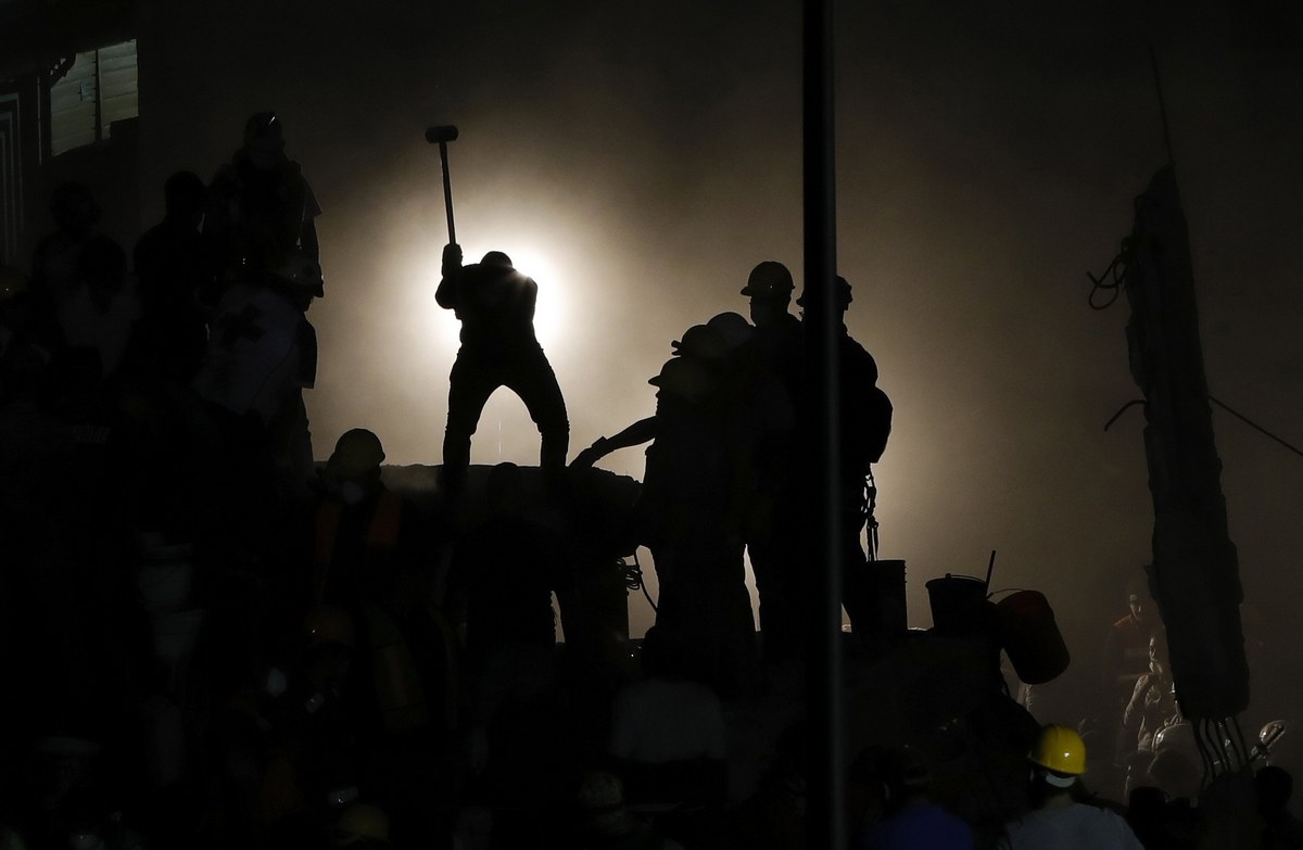 epaselect epa06215404 Rescue Services search for victims under the debris of a building that collapsed after a 7.1 magnitude, in Mexico City, Mexico, on 19 September 2017 (issued on 20 September 2017). At least 224 people died in the states of Morelos, Puebla and Mexico following a powerful earthquake that struck central Mexico, Secretary of the Interior in the cabinet Miguel Angel Osorio confirmed. Emergency services are searching for survivors buried under the rubble of collapsed buildings. EPA/Jose Mendez