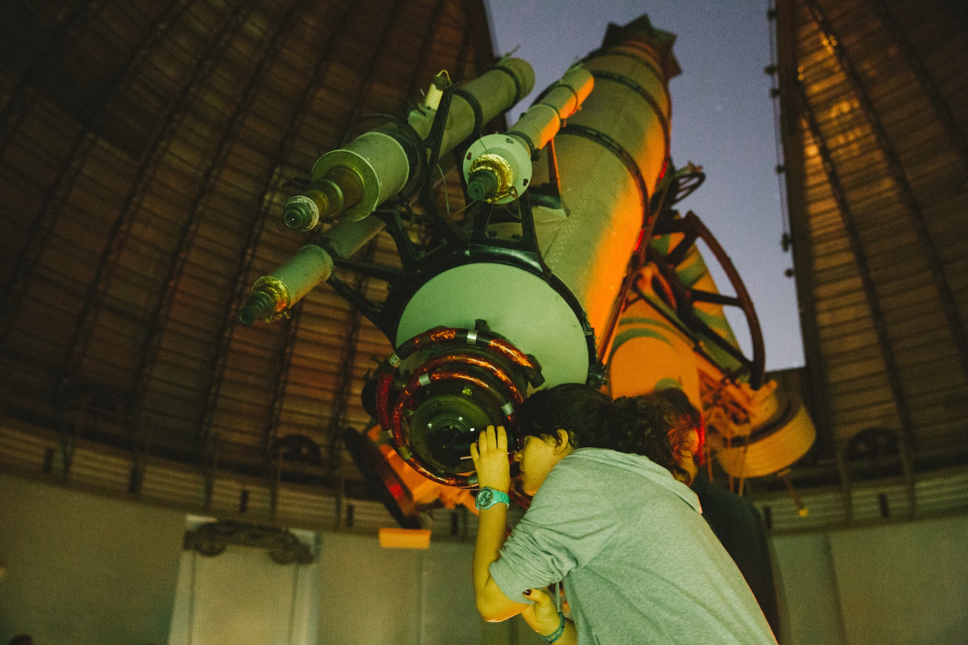 Ένας ένας περιμένουμε τη σειρά μας για να δούμε μέσα από το τηλεσκόπιο τον αστέρα Vega, που βρίσκεται σε απόσταση μόλις 25 ετών φωτός. Είναι ο φωτεινότερος αστέρας της Λύρας και ο δεύτερος σε φωτεινότητα ολόκληρου του βόρειου ημισφαιρίου της ουράνιας σφαίρας. Μετά τον Vega βλέπουμε το Δακτυλιοειδές Νεφέλωμα (με διάμετρο 20 έτη φωτός) στον αστερισμό της Λύρας, η έκρηξη του αστεριού έγινε πριν από περίπου 7.500 χρόνια και απέχει από εμάς 1.400 έτη φωτός. Ανάλογα με την εποχή που γίνεται η ξενάγηση οι επισκέπτες βλέπουν διαφορετικά σώματα στον ουρανό. Μετά τον Δεκέμβριο μπορεί κανείς να δει μέσα από το τηλεσκόπιο τον Δία και τους τέσσερις δορυφόρους του και μετά τον Μάρτιο τον Κρόνο με το εντυπωσιακό δακτυλίδι του.
