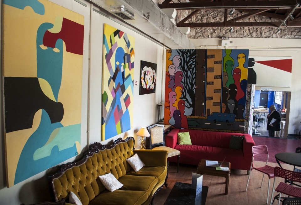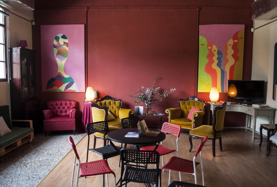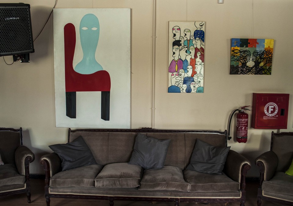 Τους τοίχους κοσμούν τα εξαιρετικά έργα του κωφού ζωγράφου και αριστούχου της ΑΣΚΤ Μανώλη Αντωνάκη. Στην πορεία οι πίνακες θα αντικατασταθούν από έργα άλλων καλλιτεχνών.