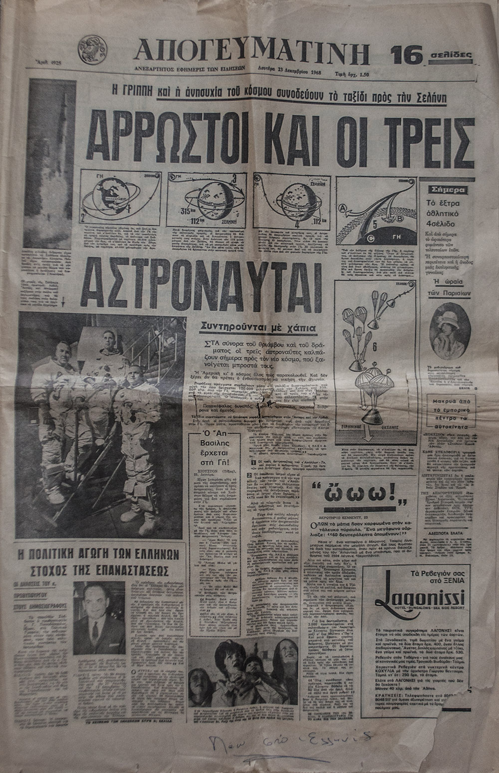 Τη Δευτέρα 23 Δεκεμβρίου του 2013, έψαξα στο αρχείο μου και ξέθαψα ένα φύλλο της Απογευματινής. Κοίταξα την ημερομηνία: Δευτέρα 23 Δεκεμβρίου 1968. Μια παλιά φυλλάδα που είχα αγοράσει από έναν παλαιοπώλη στα Εξάρχεια, ίσως και δέκα χρόνια πριν, και δεν την είχα ξεφυλλίσει ποτέ. Και έτυχε να την πιάσω στα χέρια μου μια Δευτέρα 23 του μήνα, σαν την μέρα που κυκλοφόρησε, ακριβώς 45 χρόνια μετά.