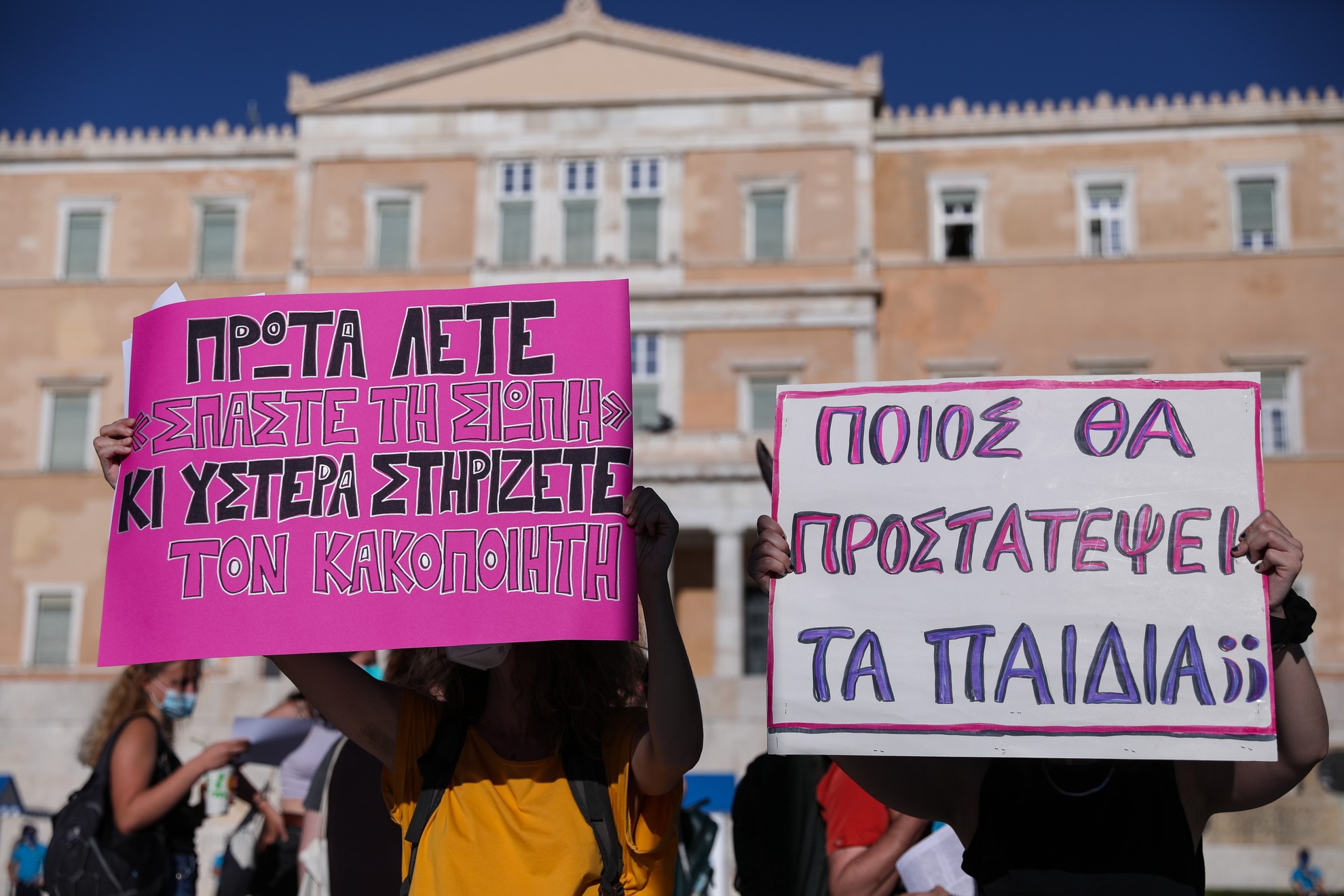 Φεμινιστική διαμαρτυρία στην Αθήνα, κατά του νομοσχεδίου Τσιάρα για τη συνεπιμέλεια, 18 Μαΐου, 2021.