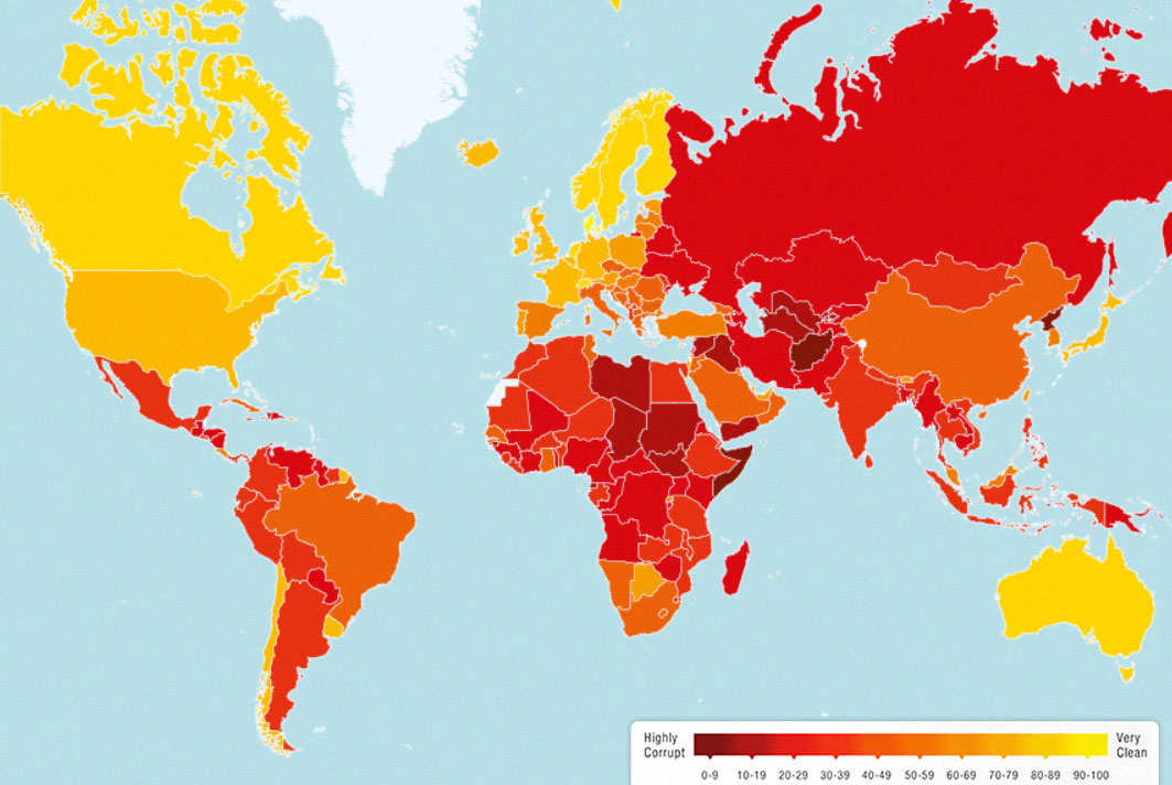 Ο νέος χάρτης “χρωμάτισε” τις διεφθαρμένες χώρες και ανέδειξε ως πρωταθλήτριες τις αφρικανικές χώρες, όπως η Σομαλία, το Σουδάν ή η ταλαιπωρημένη από τον εμφύλιο Λιβύη. Η Ελλάδα βρίσκεται λίγο κάτω από τη μέση στη θέση 80 -σε σύνολο 177-, ενώ εντύπωση προκαλούν μερικές από τις μεγάλες οικονομικές υπερδυνάμεις όπως η Ρωσία ή η Κίνα. Αυτές, μαζί με τις περιοχές όπου γίνεται πόλεμος, όπως το Ιράκ ή το Αφγανιστάν και τη Βόρειο Κορέα εμφανίζουν υψηλότερα ποσοστά διαφθοράς. H μέτρηση είναι ανάποδη με το 0 να σημαίνει πολύ διεφθαρμένη και το 100 είναι απόλυτα καθαρή. Οι χώρες που έχουν περιορίσει στο έπακρον τη διαφθορά είναι οι Σκανδιναβικές, ο Καναδάς και η Αυστραλία, ενώ λίγο πιο πίσω είναι οι Δυτικοευρωπαϊκές χώρες, όπως η Γαλλία, η Γερμανία, η Βρετανία και η προσφάτως ανανήψασα Ισλανδία. Βέβαια, όπως θα παρατηρήσετε, το χρώμα πράσινο που υποδεικνύει συνήθως την “απόλυτη υγεία”, απουσιάζει.