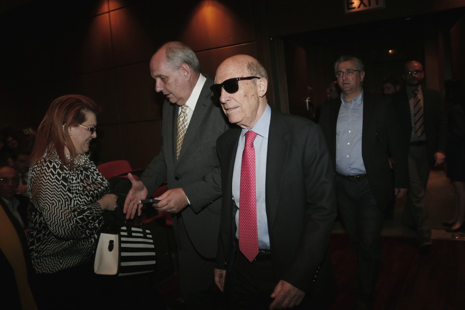 Υπουργοί, τραπεζίτες κι εκπρόσωποι του ελληνικού power game, οι οποίοι είδαν τον πρώην πρωθυπουργό Κώστα Σημίτη να κλέβει την παράσταση με το ακούσιο swag της εμφάνισής του με μαύρα γυαλιά λόγω του πρόσφατου μικροτραυματισμού του.