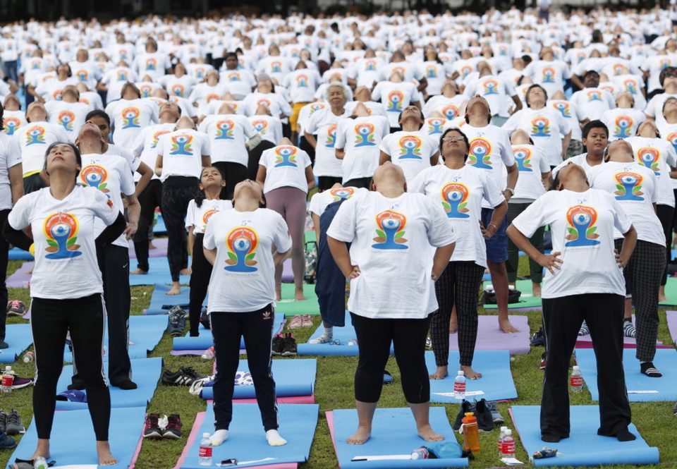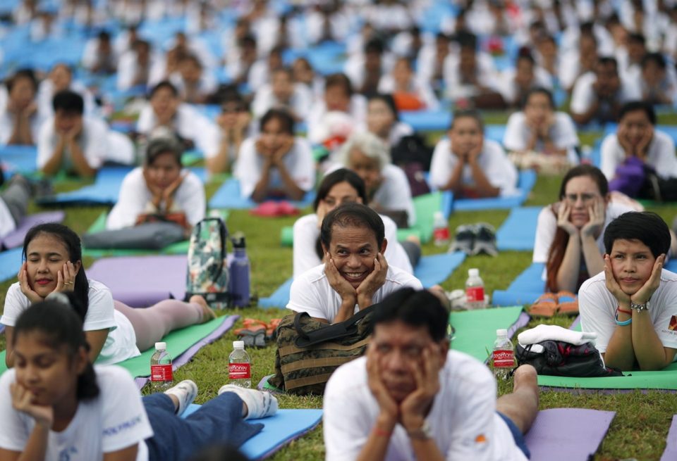 Δεκάδες κάτοικοι της Μπανγκόκ μαζεύτηκαν σε κεντρικό πάρκο της πόλης για να επιδοθούν στην αγαπημένη τους ασχολία. Μικροί και μεγάλοι ανταποκρίθηκαν στο κάλεσμα της ινδικής πρεσβείας, πήραν τα πολύχρωμα στρώματά τους και ξεκίνησαν τις ασκήσεις.