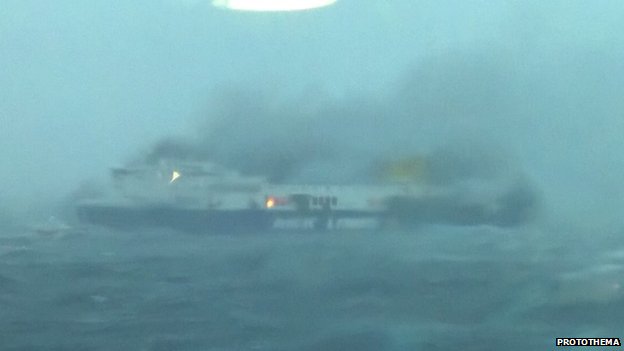 Συναγερμός σήμανε λίγο μετά τις 4.00 το πρωί όταν και ξέσπασε πυρκαγιά σε πλοίο της ΑΝΕΚ το οποίο έπλεε ανοιχτά της Κέρκυρας με προορισμό την Ιταλία. Στο πλοίο επιβαίνουν 422 επιβάτες, 222 οχήματα και 56 άτομα πλήρωμα. Η αιτία της πυρκαγιάς είναι ακόμα άγνωστη ενώ οι δυσμενείς καιρικές συνθήκες (η χαμηλή θερμοκρασία, η βροχή, το χαλάζι αλλά και ο καπνός) που επικρατούν καθιστούν το έργο των σωστικών αρχών ιδιαίτερα δυσχερές. Το πλοίο, το οποίο έχει μείνει ακυβέρνητο, έχει περάσει λίγο μετά τις 10.00 το πρωί στα ιταλικά χωρικά ύδατα και για αυτό η επιχείρηση διάσωσης γίνεται από τη Ρώμη σε συνεργασία με την Ελλάδα. Πρόθεση να βοηθήσει δείχνει και η Αλβανία. Επιβάτες και πλήρωμα έχουν συγκεντρωθεί στη γέφυρα του πλοίου με τα παραπλέοντα πλοία να έχουν εντολή να κυκλώσουν το φλεγόμενο πλοίο ώστε να το προστατέψουν από τις δύσκολες καιρικές συνθήκες και να γίνει πιο εύκολα η διαδικασία επιβίβασης των επιβατών σε σωσίβιες λέμβους και η μετεπιβίβασή τους σε άλλο πλοίο.