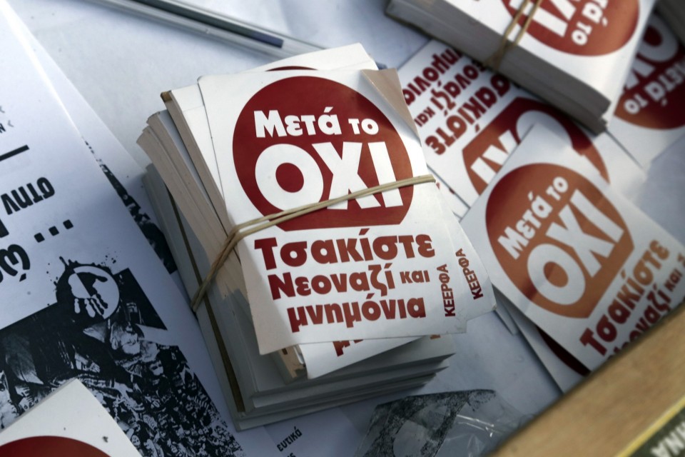 Με μια στοίβα από φυλλάδια ανά χείρας, που μου μοιράζονταν ανά τετραγωνικό μέτρο στην οδό Ευελπίδων, κατευθύνομαι προς την αίθουσα της εκδήλωσης. Ένα τρικάκι του ΚΕΕΡΦΑ για την σημερινή αντιφασιστική συγκέντρωση έξω από τα δικαστήρια των φυλακών κορυδαλλού όπου εκδικάζεται η υπόθεση της Χρυσής Αυγής γίνεται στα πόδια ενός εφήβου αυτοσχέδια μπάλα βοηθώντας το να εντυπωσιάσει με ποδοσφαιρικού τύπου τερτίπια το συνομήλικο κορίτσι του. Στον κόσμο των μεγαλύτερων, έντυπα υπό τον τίτλους «Ναζισμός και Ευρωπαϊκή ενοποίηση» και «Σοσιαλισμός» προσελκύουν τους παρευρισκόμενους στον εξωτερικό διάδρομο ενώ από τα ηχεία το διασκευασμένο αλλά διαχρονικό «Bella Ciao» εναλλάσσεται με το πιο σύγχρονο ρυθμό του «Δεν Πληρώνω» των Active member.