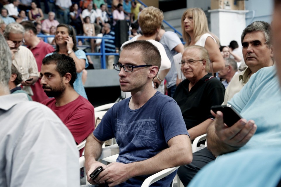 Τη στιγμή που ο πρώην υπουργός Παραγωγικής ανασυγκρότησης, Περιβάλλοντος και Ενέργειας διατείνεται πως δε βρίσκεται στην αριστερά κυνηγώντας καρέκλες και αξιώματα εγώ πράττω ακριβώς το αντίθετο, απογοητευμένη από τις τσάντες που υποδεικνύουν πως οι καρέκλες μπροστά μου είναι ρεζερβέ και θυμίζοντάς μου τον καθιερωμένο αυγουστιάτικο τσακωμό που με περιμένει για μια θέση στο κατάστρωμα. Η ιντριγκαδόρικη αναφορά του ομιλητή σε «συντροφικά μαχαιρώματα» εντός του κόμματος, έπειτα από την άρνηση βουλευτών όπως εκείνος να ψηφίζουν τα προαπαιτούμενα μέτρα με κάνει να ξεχάσω προσωρινά την ορθοστασία που με ταλαιπωρεί και τον Κώστα Λαπαβίτσα να σκουπίσει τον ιδρώτα από το μέτωπό του.