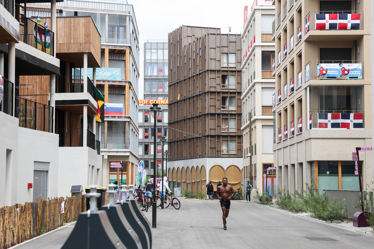 epa11492694 An athlete runs at the Athletes' Village of the Paris 2024 Olympic Games in Saint Denis, France, 23 July 2024. The Summer Olympics are scheduled to take place from 26 July to 11 August 2024 in Paris. EPA/Mohammed Badra