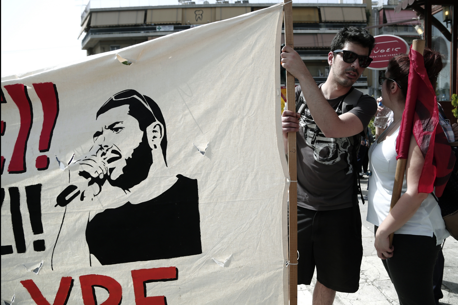 Το πρόσωπο του Παύλου Φύσσα υπήρχε σε πολλά από τα πανό.