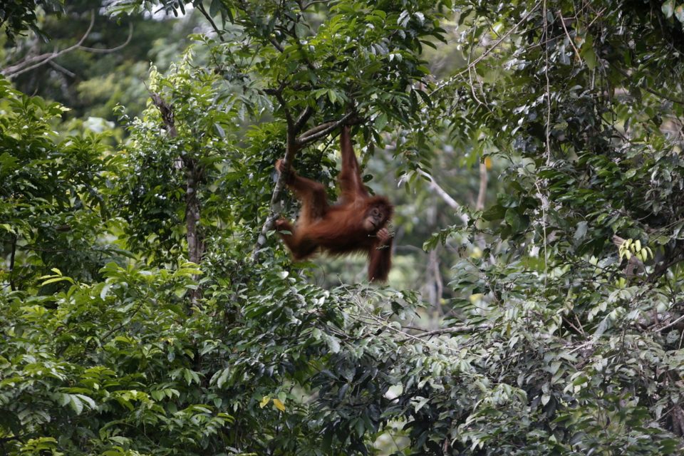 Η ηλικίας μόλις 5 ετών Ιλέιν με κανελί τρίχωμα είναι η μία εκ των δύο θηλυκών ουρακοτάγκων που αφέθηκαν ελεύθεροι αυτήν την εβδομάδα σε ένα ινδονησιακό καταφύγιο ζώων, αφού μαθήτευσαν για σχεδόν δύο χρόνια “στο σχολείο του δάσους” για να μπορούν να προσαρμοστούν ξανά στην άγρια φύση.