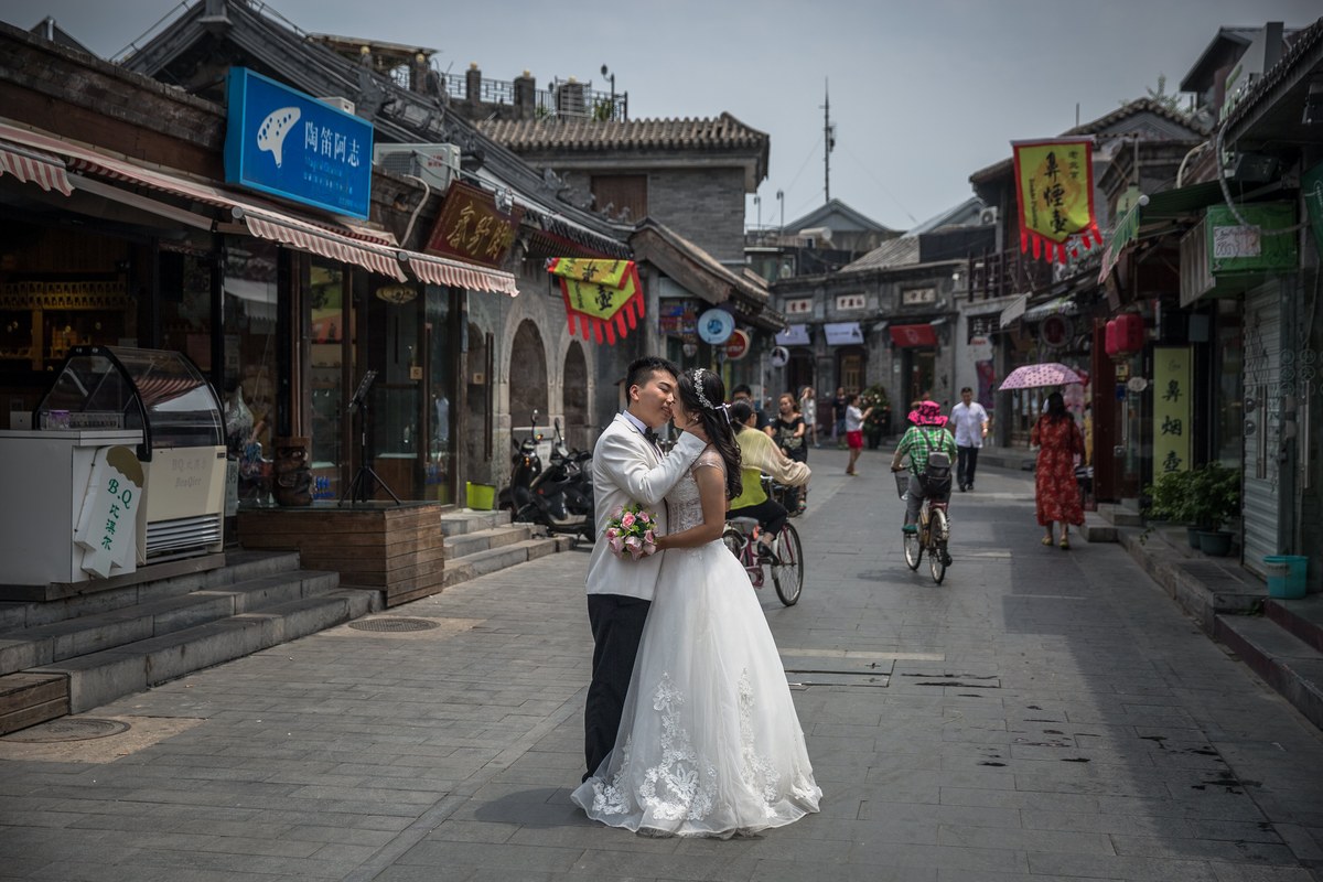 epa06080614 A Chinese couple has their pre-wedding photos taken on a street in Beijing, China, 11 July 2017. The current world population of 7.6 billion is expected to reach 8.6 billion in 2030, 9.8 billion in 2050 and 11.2 billion in 2100, according to a United Nations report published on 21 June 2017. China with 1.4 billion inhabitants is the most populous country in the world. The United Nations Population Fund (UNFPA) celebrates World Population Day on 11 July, which highlights how family planning can empower people and help developing nations. EPA/ROMAN PILIPEY