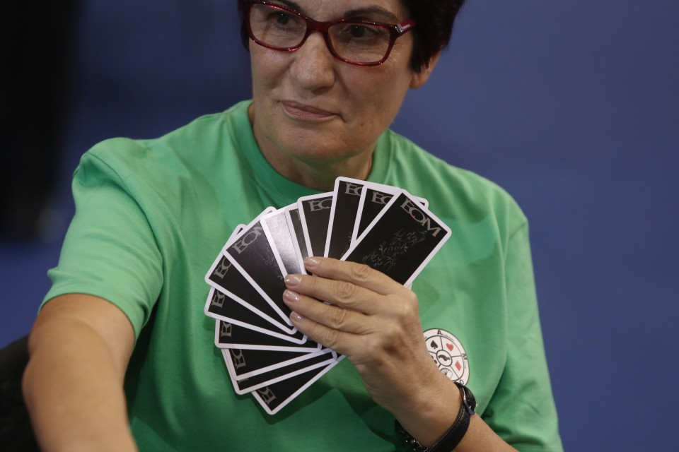 Καθισμένη παραπλεύρως προσπαθώ να αντιληφθώ τους κανόνες που ακολουθούν βουβά στο τραπέζι μπροστά μου. «Αν ξέρεις πρέφα ή μπουρλότ αντιλαμβάνεσαι τι συμβαίνει σε τρία λεπτά, είναι σα να λύνεις διαρκώς ένα παζλ αλλά για να το καταφέρεις πρέπει να εντρυφήσεις σε κάποιους απλούς κανόνες του παιχνιδιού», εξηγεί ο κύριος Αθανασιάδης σε εκείνη που οι γνώσεις της περιορίζονται στην ξερή και τον μουτζούρη. «Πρωτάθλημα σημαίνει πως αφού όλες οι τράπουλες μοιράζονται μια φορά στην αρχή, στο τέλος συγκρίνουμε, με τα ίδια δεδομένα, πως χειρίστηκαν τα χαρτιά διαφορετικές ομάδες. Επομένως δεν παίζει ρόλο ο παράγοντας τύχη αλλά το κατά πόσο θα αξιοποιήσεις τα φύλλα που κρατάς», επισημαίνει καθησυχάζοντάς με ο πρόεδρος την ώρα που, έχοντας πάρει αυθόρμητα το μέρος του ζεύγους που τελικά χάνει του πόντους της παρτίδας από τη στιγμή που δεν κατάφερε να πραγματοποιήσει το στόχο που έθεσε κατά την πρώτη φάση, νιώθω πως δεν στάθηκα δίπλα τους ως γούρι.