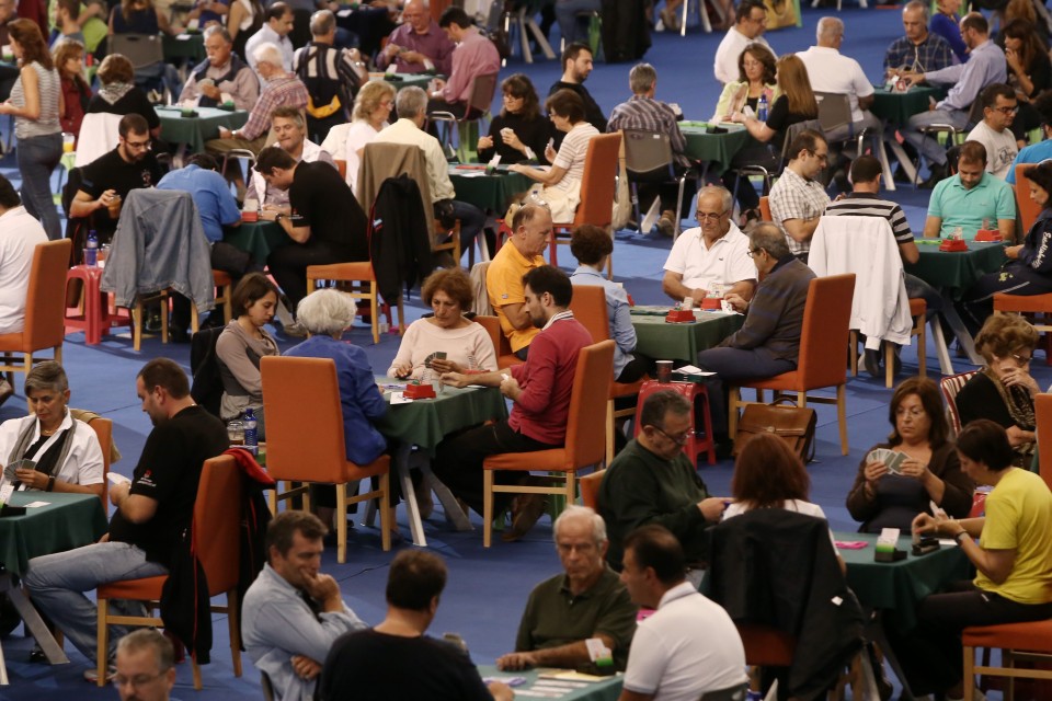 Το παιχνίδι που ξεκίνησε ως παραλλαγή του αγγλικού Ουίστ και υπήρξε δημοφιλές μεταξύ των διπλωματικών αποστολών δυτικών κρατών στην Κωνσταντινούπολη, ενώ είχε ήδη από το 1870 αναπτυχθεί σε Σερβία, Ρουμανία και Ρωσία, παίζεται εκείνο το βράδυ με αντιπάλους Βόλο – Πειραιά, Σάμο – Μυτιλήνη, Ρέθυμνο – Αθήνα, Καλαμάτα – Χαλκίδα, Θεσσαλονίκη – Καλλιθέα, Αγρίνιο – Πάτρα. Παρότι με μια γρήγορη ματιά μοιάζει να είναι αντρική υπόθεση, μαθαίνω πως το 70% των φετινών 2000 αιτηθέντων για αγωνιστικό δελτίο είναι γυναίκες.