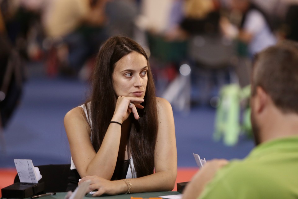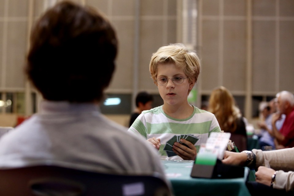 Αφού έχω πληροφορηθεί πως ο Σοφοκλής Βενιζέλος και ο Γεώργιος Ράλλης υπήρξαν μεγάλοι εραστές του αθλήματος και πως στην αίθουσα βρίσκονται πρώην παίκτες πόκερ που έπαψαν να τζογάρουν όταν μυήθηκαν σ’ αυτό, ακούω τον κύριο Χατζηφαράκη -ετών 78 από τα Χανιά- να περηφανεύεται πως συλλέγει εδώ και 70 χρόνια τρόπαια που κάνουν τη σύζυγό του να παραπονιέται για τη διακόσμηση του σπιτιού. Λίγο πριν νιώσω ότι ρίχνω κατά πολύ το μέσο όρο ηλικίας συναντάω τη δεκαεξάχρονη πρωταθλήτρια της Εθνικής Νέων που χαμογελά βιαστικά στον φακό.