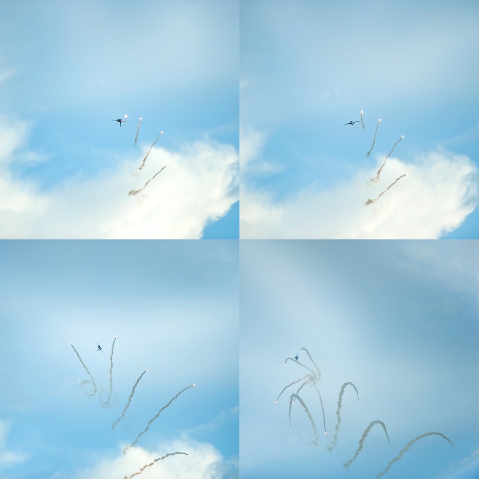 Λίγο αργότερα, οι Σαουδάραβες πιλότοι σχηματίζουν με κόκκινο καπνό μια καρδιά που την τρυπάει ένα βέλος, ενώ από τα πιο εντυπωσιακά τους κόλπα είναι το crossover, όταν δύο αεροσκάφη έρχονται από δύο αντίθετες πλευρές και συναντώνται στη μέση της διαδρομής, με στροφή στον αέρα, σε απόσταση μικρότερη των δύο μέτρων. Κάτι τέτοιες στιγμές μας λέει ο σμηναγός Abdullah Al-Falih, δεν μπορείς να αφήσεις τα χέρια σου από τα χειριστήρια για τίποτα. «Έχει τύχει να νιώθω το ιδρώτα μου να τρέχει από το μέτωπο να μπαίνει στο ένα μου μάτι και να μην μπορώ να τον διώξω. Συνέχισα να πιλοτάρω με το άλλο», μας λέει.