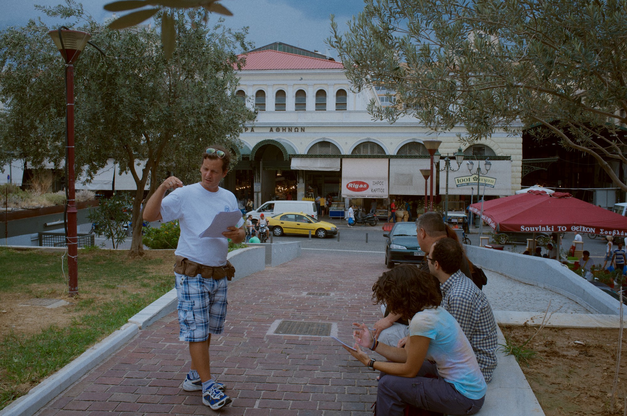 Ο Λάμπρος (αριστερά) και ο Χρήστος (δεξιά) παρακολουθούν την ξενάγηση του Γιάννη, την οποία θα κληθούν και οι ίδιοι να κάνουν μετέπειτα