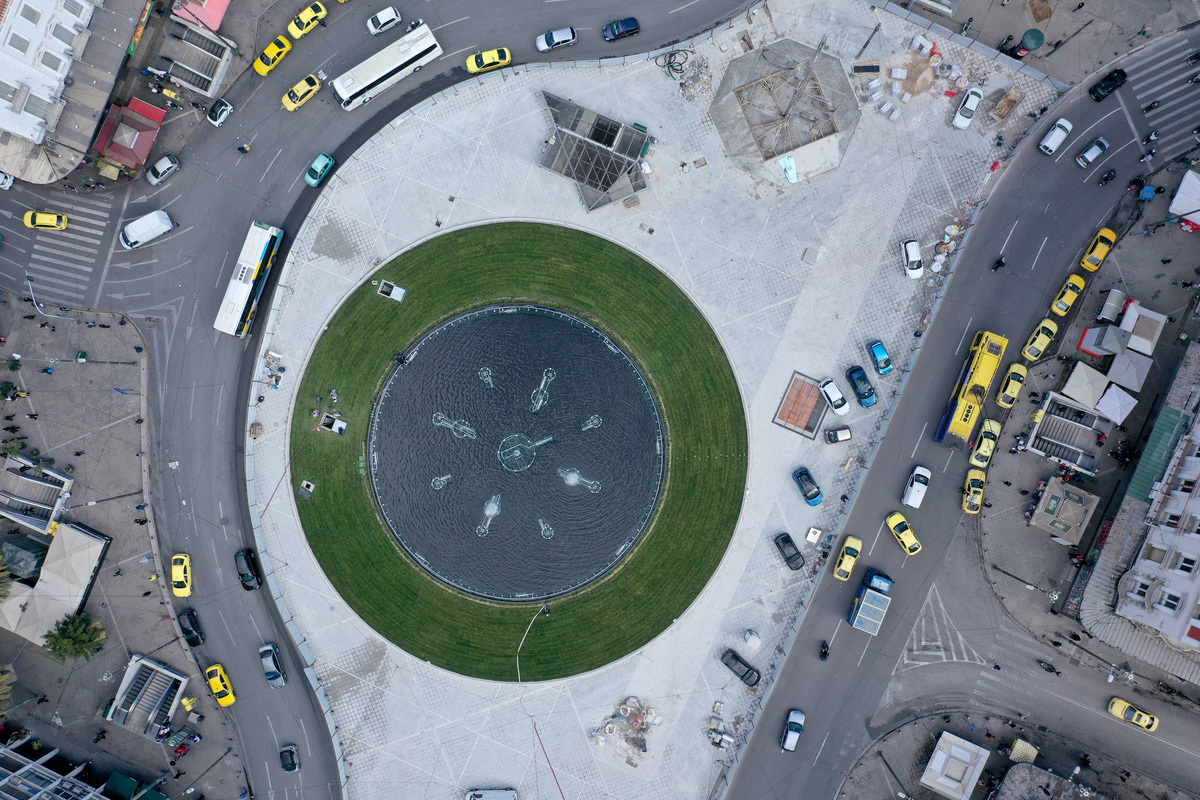 Μπορεί το άθροισμα ενός κυκλοφοριακού κόμβου, ενός σιντριβανιού, ενός απροσπέλαστου πρασίνου κι ενός γλυπτού να δημιουργήσει έναν πραγματικό χώρο συνάθροισης, συνάντησης κι ανταλλαγής ή μήπως σχεδιάστηκαν ως ένα ευχάριστο φόντο για τους θαμώνες των καφενείων και τα μπαλκόνια των ξενοδοχείων, αναρωτιούνται οι ΜοΥ studio.