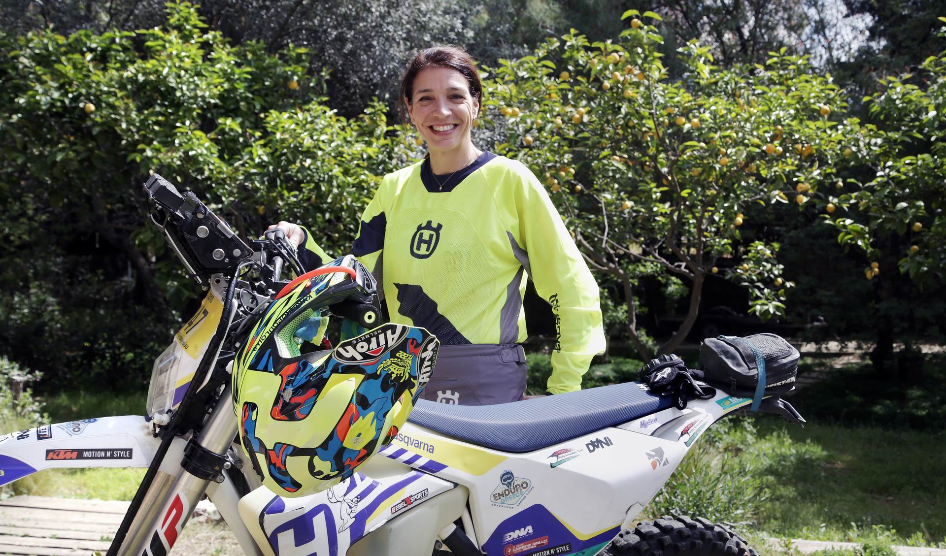 Με ξεναγεί στο γκαράζ του σπιτιού της και μου δείχνει τις τρεις μηχανές της. Διαφορετικών κυβικών, την περίοπτη θέση όμως έχει η Husqvarna, πάνω στην οποία είναι τοποθετημένο το roadbook, δηλαδή o οδηγός πλοήγησης των αναβατών στους αγώνες. Η Πολυτίμη Κυριακοπούλου μαρκάρει με διαφορετικό χρώμα τις αριστερές και δεξιές στροφές, για να καταλαβαίνει γρήγορα προς τα που πρέπει να στρίψει όταν καβαλάει τη μοτοσικλέτα της. Διότι αν χαθείς, στην καλύτερη θα το καταλάβεις μετά από πέντε-δέκα χιλιόμετρα και θα πρέπει να γυρίσεις πίσω, χάνοντας έτσι πολύτιμο χρόνο στην πορεία προς τον πολυπόθητο τερματισμό.