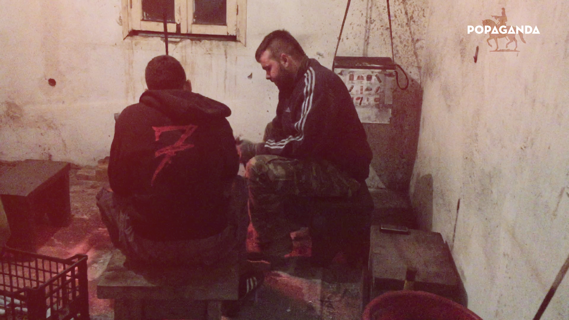 Συναντηθήκαμε με το συνεργείο των Ντάντανων ένα απόγευμα σε ένα παραλιακό καφέ στο Βροντάδο. Τα μέλη του συνεργείου μαζί με μερικούς φίλους τους θα έκαναν δοκιμές στο μώλο από κάτω. Οι υπόλοιποι κατέφθασαν με τα αυτοκίνητα και τα πάρκαραν στην άκρη της παραλίας μέσα στις λάσπες. Στο πορτ μπαγκάζ είχαν ένα δείγμα από τις ρουκέτες που παρασκεύαζαν εκείνο τον καιρό. Άρχισαν να τις ανάβουν. Το θέαμα ήταν εκπληκτικό. Δεν έχει σχέση με τα κλασικά πυροτεχνήματα. Οι βρονταδούσιες ρουκέτες κάνουν μια φωτεινή πορεία σαν όλμος- εκτοξεύονται πολυ ψηλά και ύστερα πέφτουν στη θάλασσα σαν μετεωρίτες με φόντο τα τουρκικά παράλια. Ύστερα μπήκαμε σε ένα παλιό αμάξι και μας οδήγησαν σε μια συνοικία του Βροντάδου. Παρκάραμε και διασχίσαμε μέσα στο σκοτάδι ένα χωράφι στο βάθος του οποίου υπήρχε μια τσιμεντένια καλύβα. Ένα μικροσκοπικό ασοβάριστο σπίτι που μύριζε κάρβουνο, με εκατομμυρία σωματίδια να αιωρούνται στο χώρο (κάτι που κατάλαβα όταν άναψα το φακό της κάμερας). Τα παιδιά πήραν τις θέσεις τους. Σε λίγο ένα εκκωφαντικό σφυροκόπημα θα ακουγόταν από αυτή την μικρή καλύβα του Βροντάδου.
