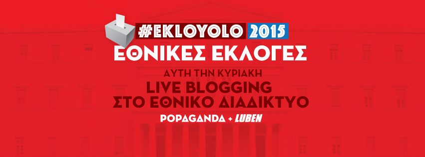 Μέσω του hashtag #ekloyolo και με live blogging από την Κυριακή στις 17:00 περιμένουμε τα δικά σας σχόλια στα social media, τις δικές σας σέλφι μέσα από τα εκλογικά παραβάν, φωτογραφίες από τα ξέφρενα πάρτι των νικητών ή τα κονιάκ με τους ηττημένους. Αυτή την Κυριακή 25 Γενάρη βλέπουμε τις εκλογές σε υψηλή ανάλυση στο εθνικό δια-δίκτυο με την Popaganda και το Luben.tv σε μια πραγματική #ekloyolo σύμπραξη.