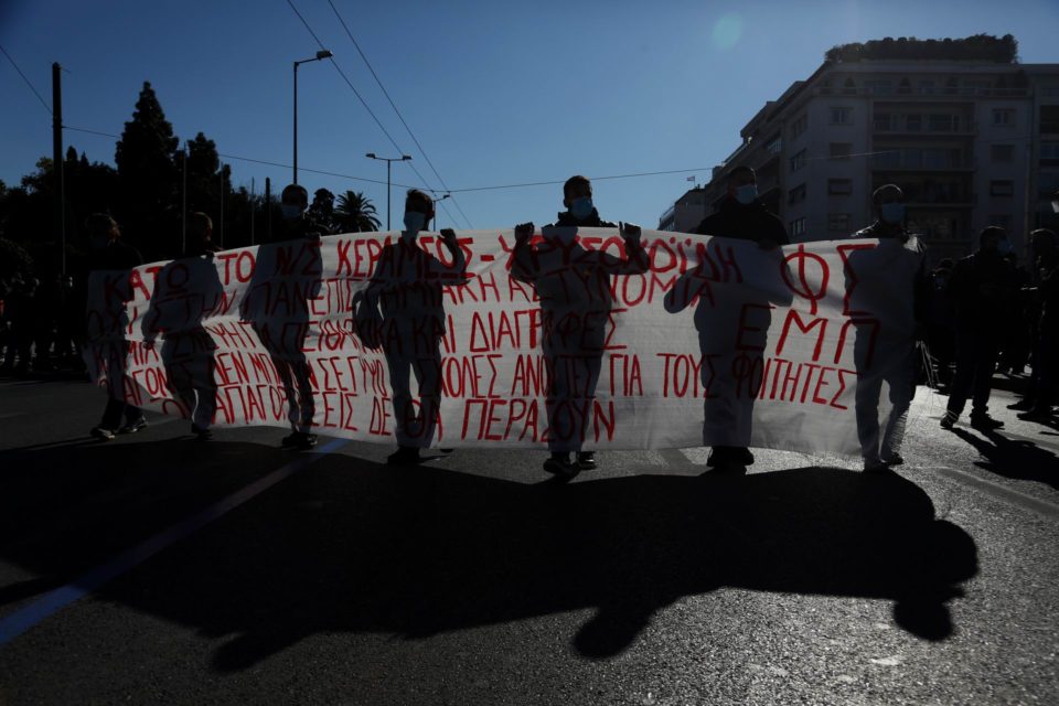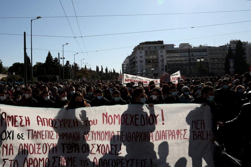 Οι φοιτητές και οι φοιτήτριες αντιδρούν στην πανεπιστημιακή αστυνομία και στις αλλαγές στον τρόπο εισαγωγής στην τριτοβάθμια εκπαίδευση που φέρνει το νομοσχέδιο του υπουργείου παιδείας. Επίσης απαιτούν να ανοίξουν ξανά τα πανεπιστήμια με μέτρα και ασφάλεια, καθώς οι σχολές πλέον συμπληρώνουν ένα χρόνο κλειστές. Το συλλαλητήριο ολοκληρώθηκε λίγο πριν από τις 3 το μεσημέρι χωρίς προβλήματα, παρά τους περιορισμούς που έχει ανακοινώσει η αστυνομία με πρόσχημα την πανδημία.