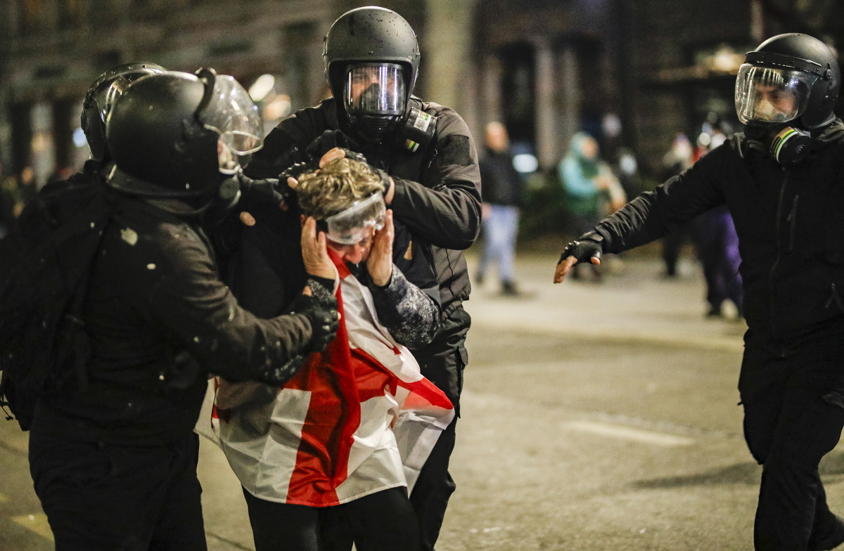 Το Υπουργείο Εσωτερικών της Γεωργίας δήλωσε τη Δευτέρα το πρωί ότι μέχρι εκείνη τη στιγμή 21 αστυνομικοί είχαν τραυματιστεί και 224 άτομα είχαν συλληφθεί κατά τη διάρκεια των πολυάριθμων διαδηλώσεων που υποστηρίζονται από την πρόεδρο της χώρας Σαλώμη Ζουραμπιτσβίλι, η οποία υποστηρίζει την ένταξη της Γεωργίας στην ΕΕ.